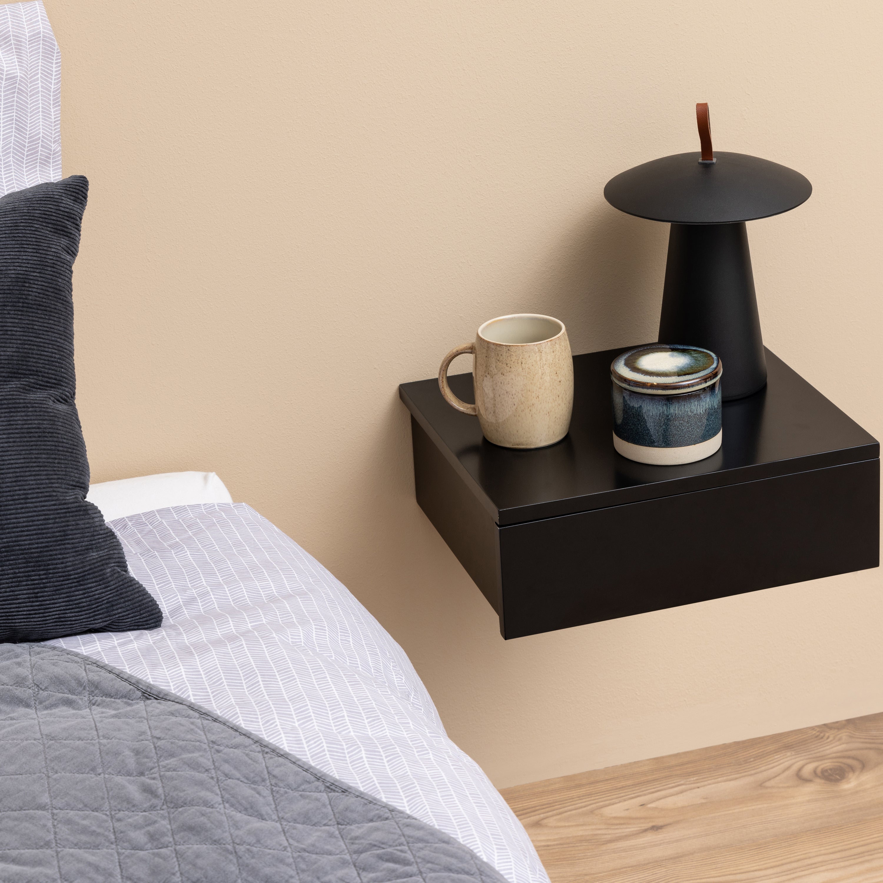 Heb met dit by fonQ Wall nachtkastje je afstandsbediening, tijdschriften en wat dan ook maar binnen handbereik. Er is voldoende plek en het kastje heeft een lade. Hang hem op de gewenste hoogte op en je bent klaar!