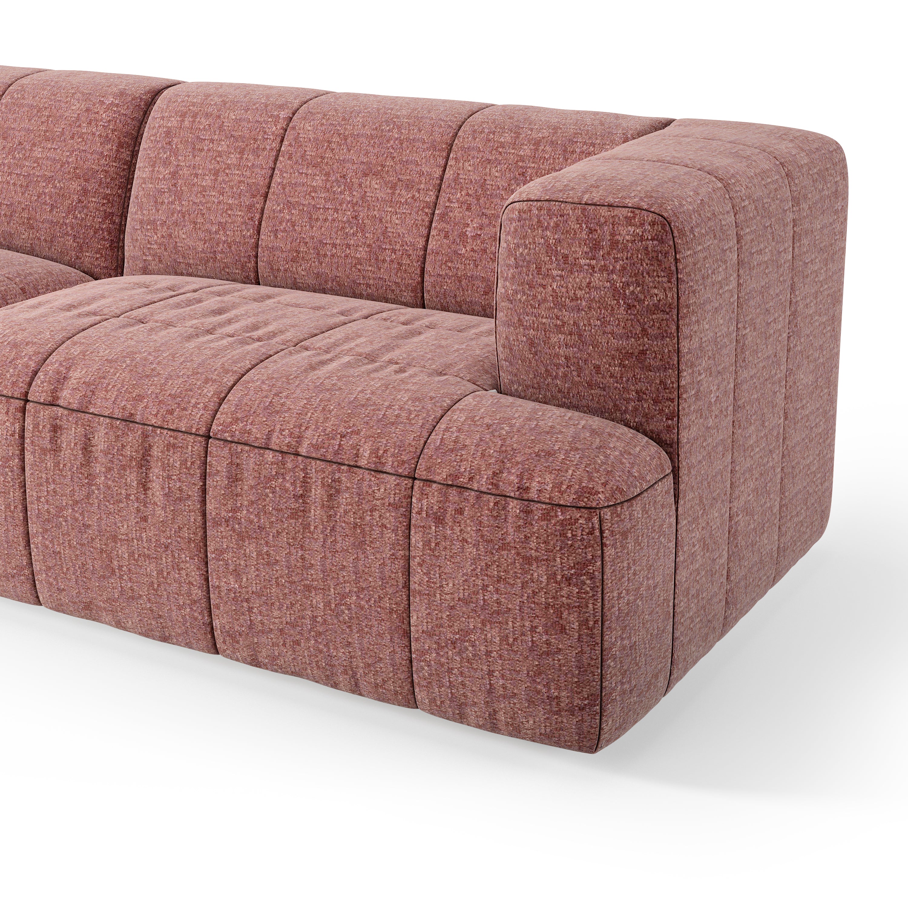 - De Brick hoekbank van by fonQ is een comfortable bank waar je na een lange dag op wilt neerploffen. De bekleding voelt heerlijk zacht aan en deze roze bank met ronde hoeken geeft jouw woonkamer een knusse sfeer.