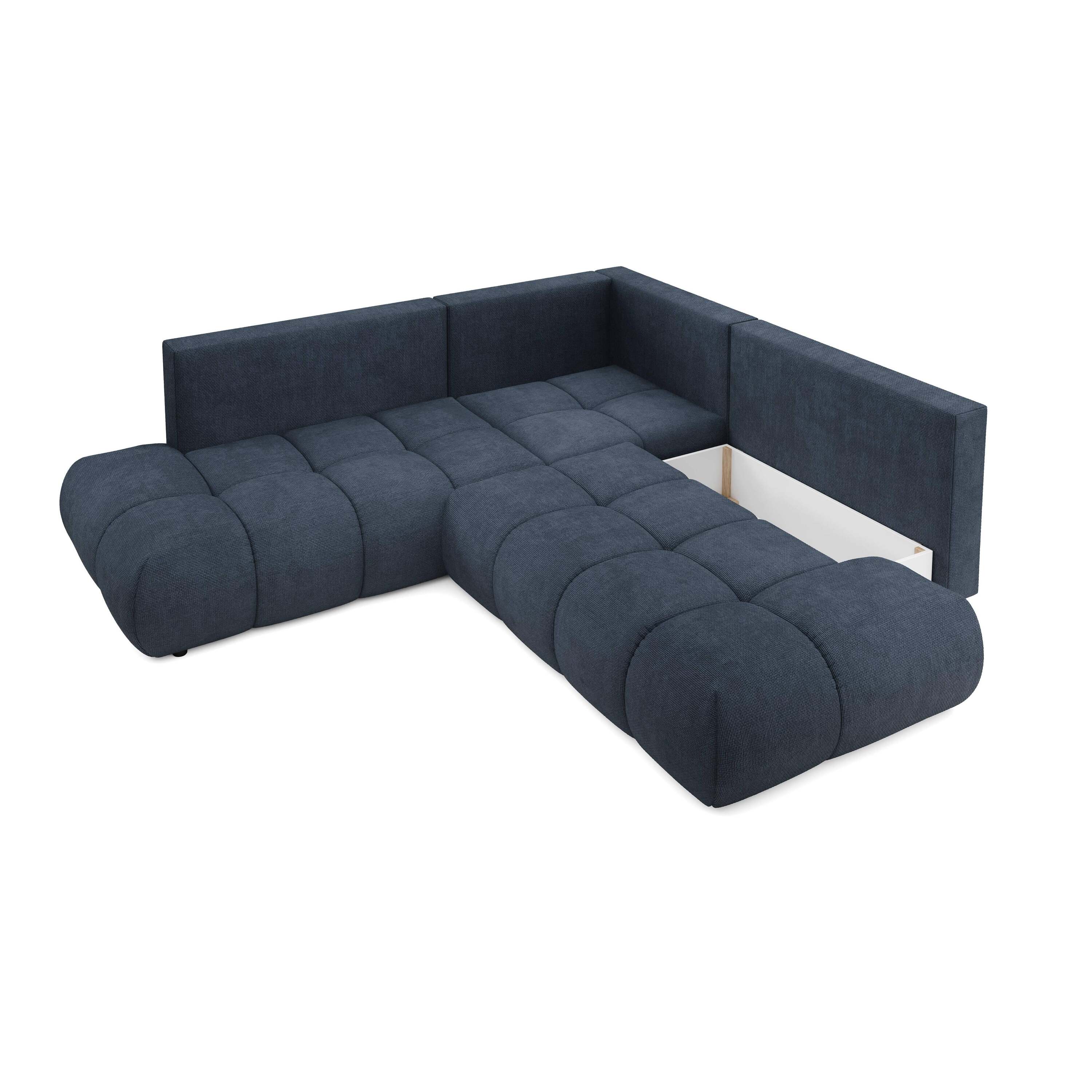 by fonQ Charme Hoekbank Links/Rechts met Slaapfunctie - Chenille - Marineblauw
