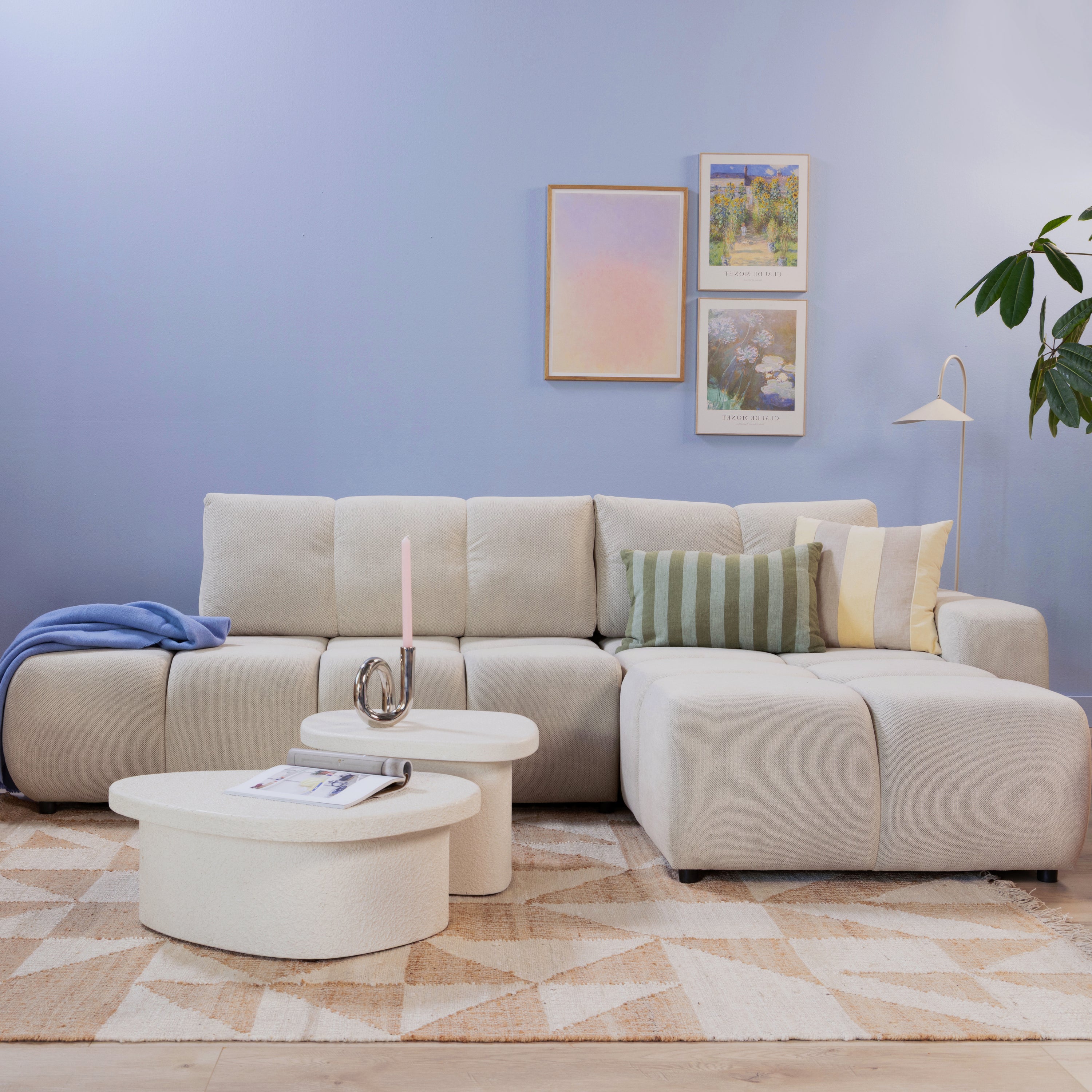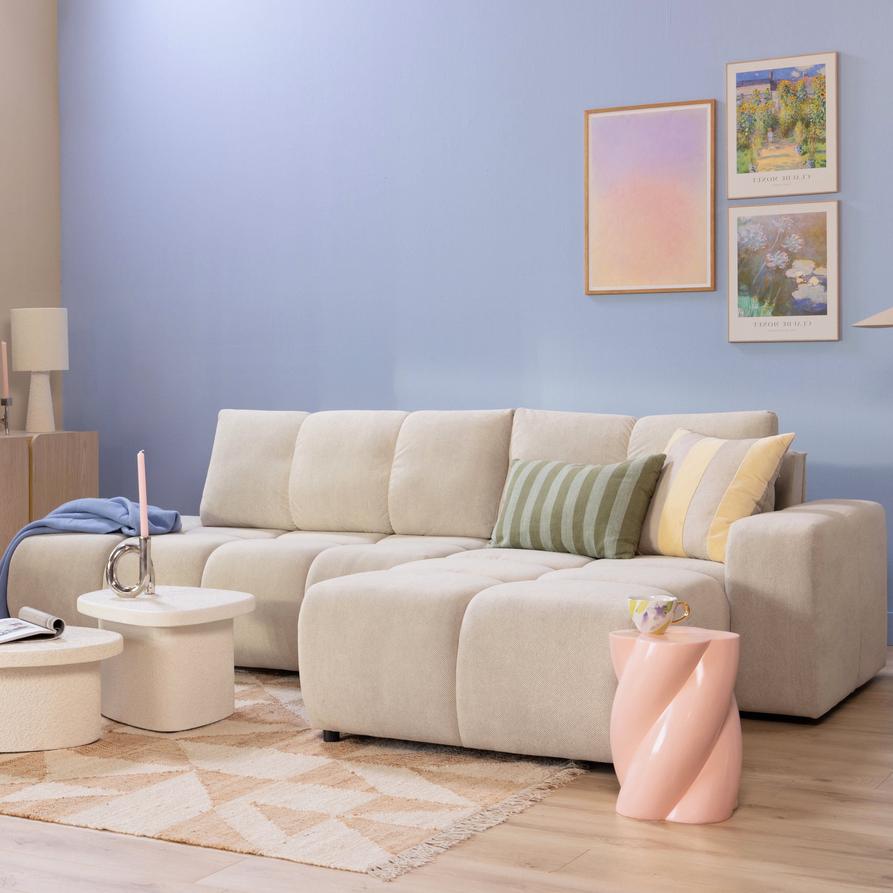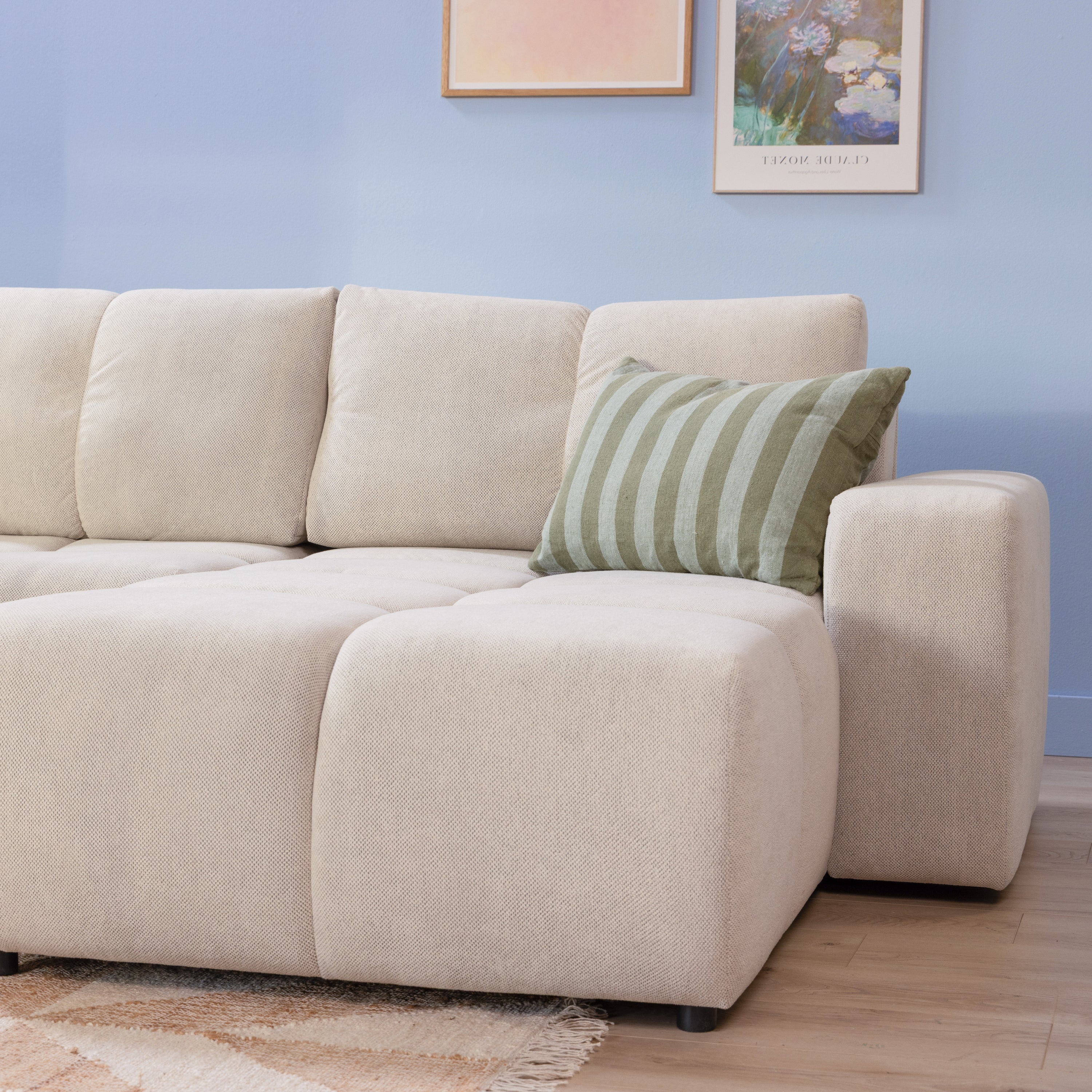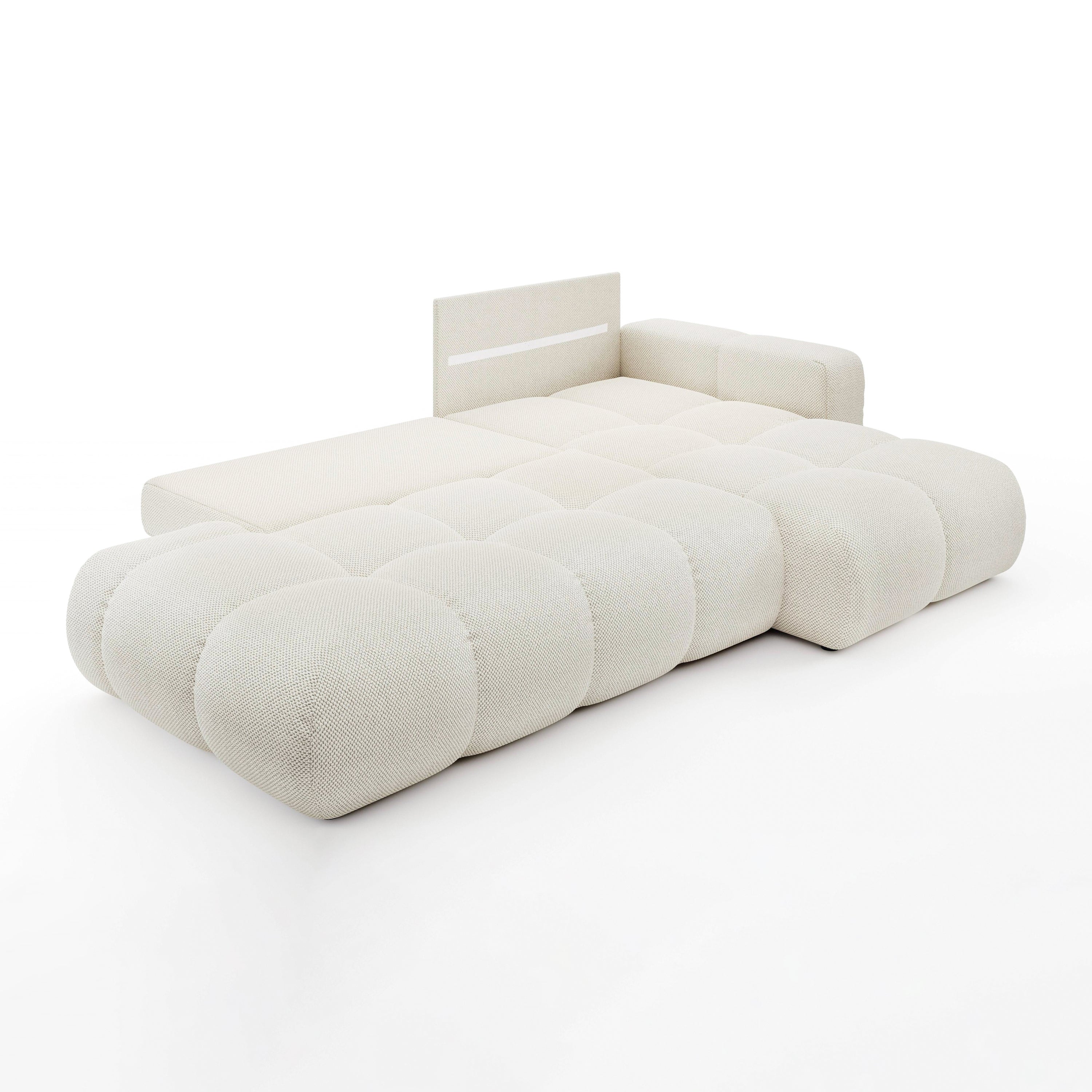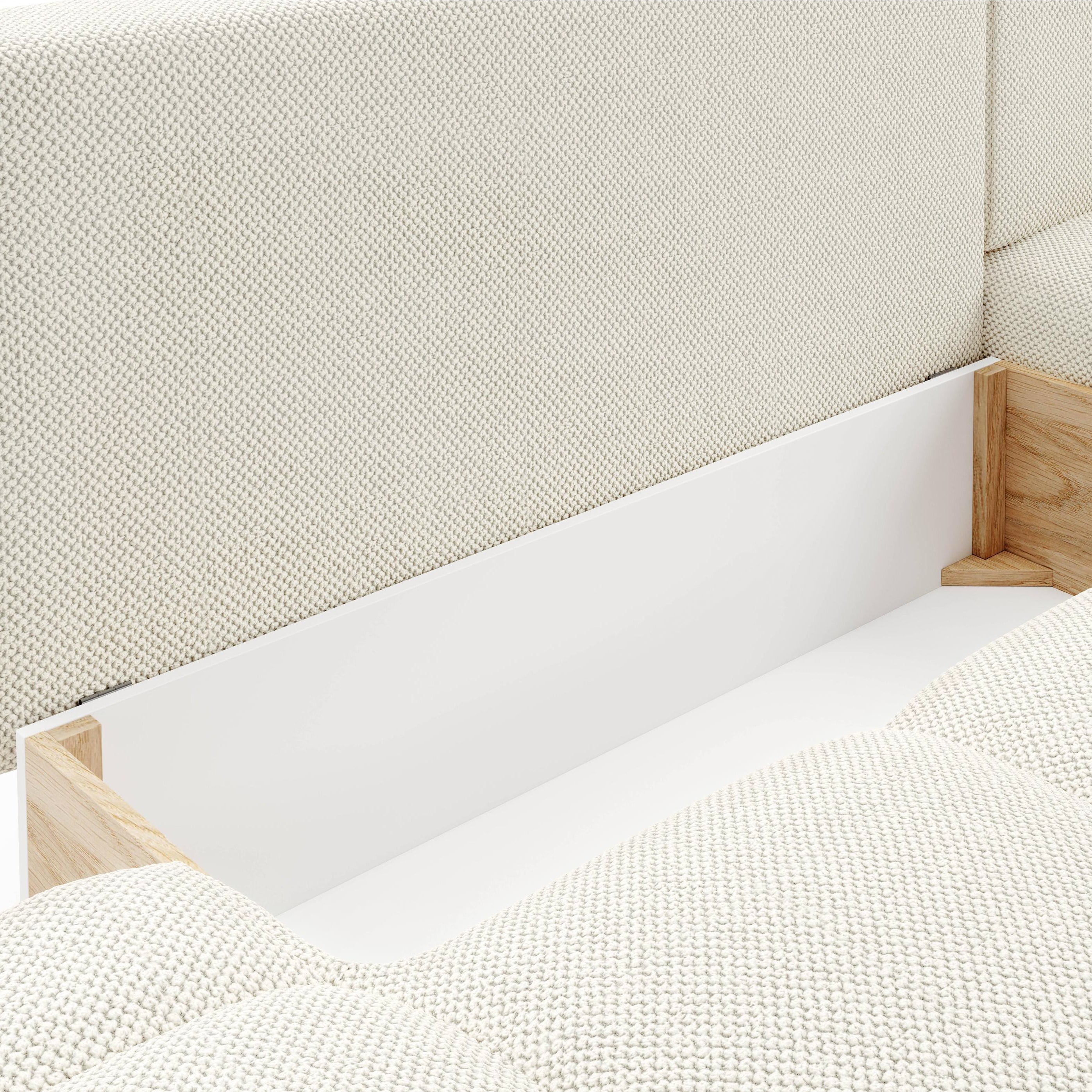 by fonQ Charme Hoekbank Rechts met Slaapfunctie - Weefstof - Ivoor