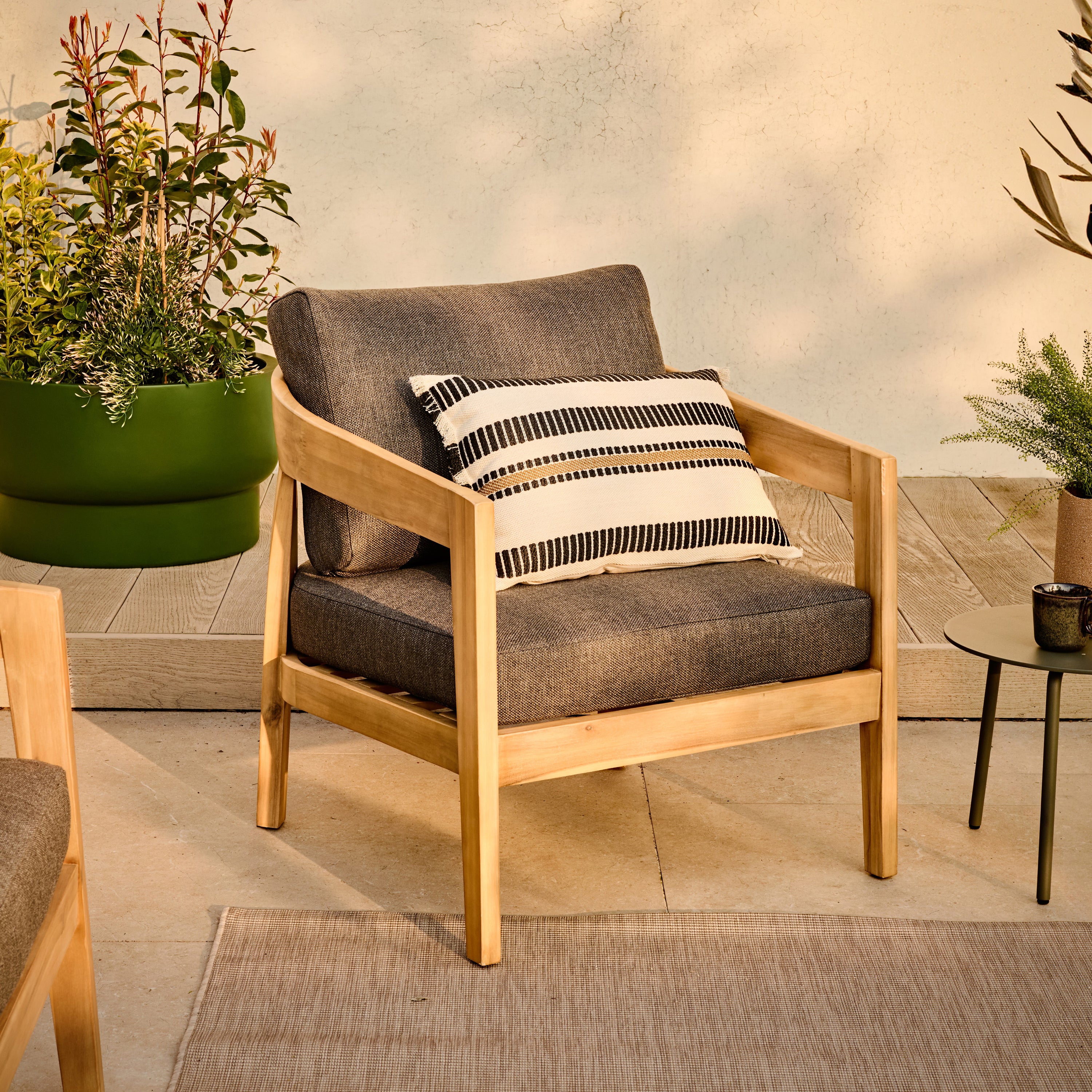 - Het afgeronde acaciahouten frame geeft een geborgen gevoel, en oogt ook nog eens heel mooi!