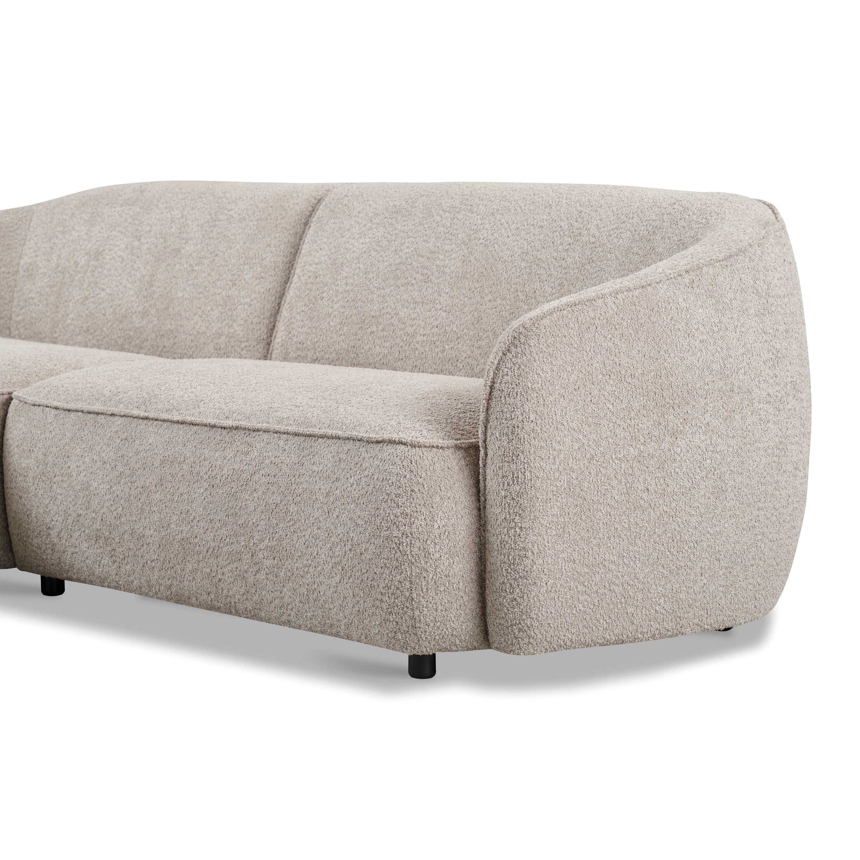 - Zachte bouclé bekleding met een warme, uitnodigende uitstraling