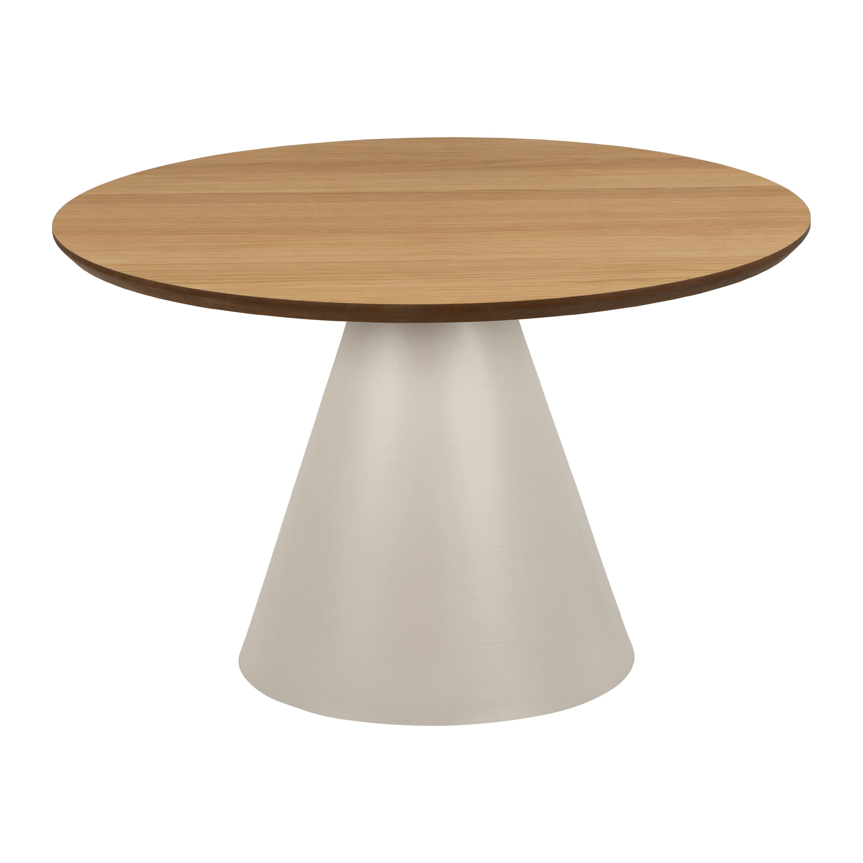 - Mooi rond tafelblad van eikenfineer met een matte afwerking en een polyurethaan beschermende coating