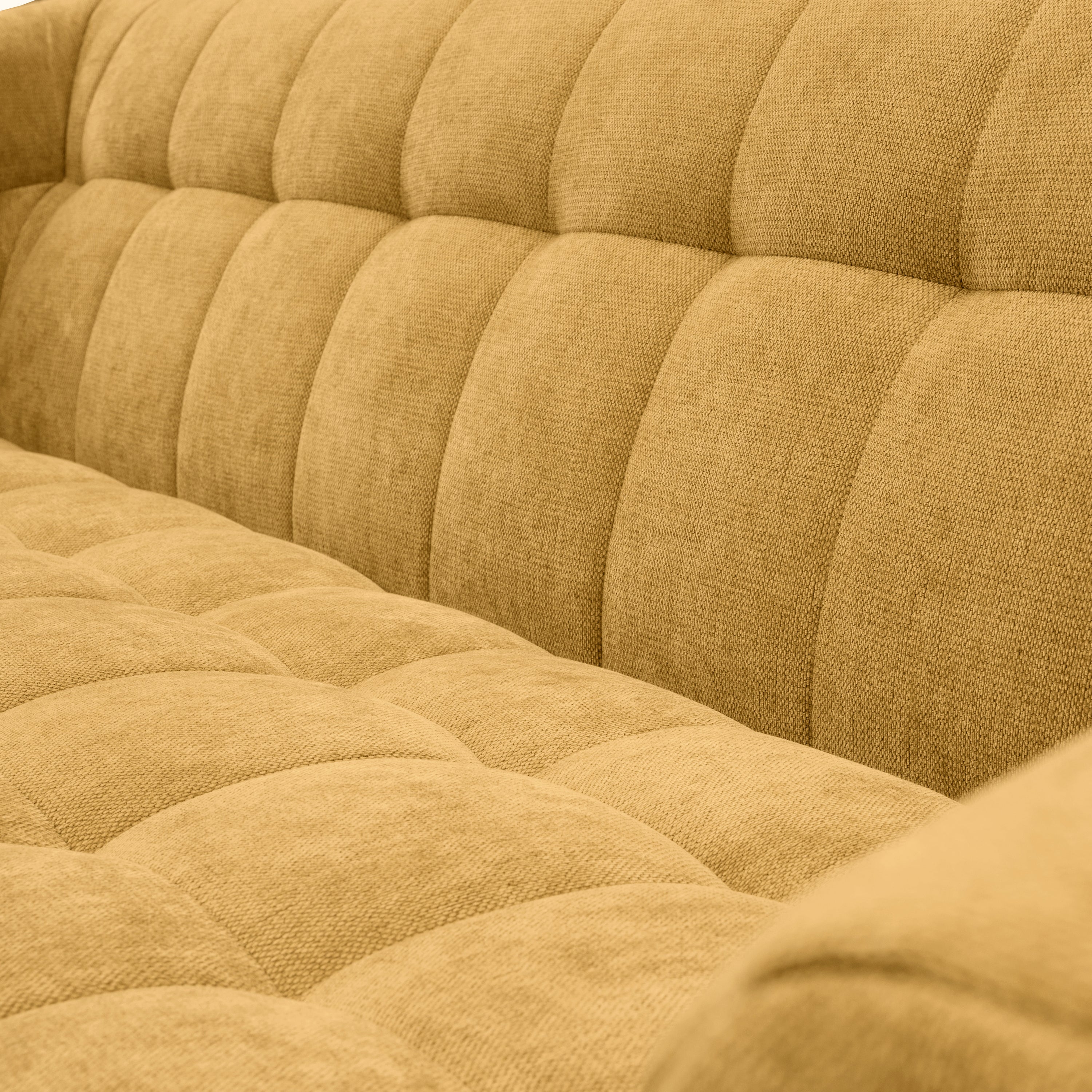 - Brede armleuningen die het ontwerp z’n volle, uitnodigende vorm geven