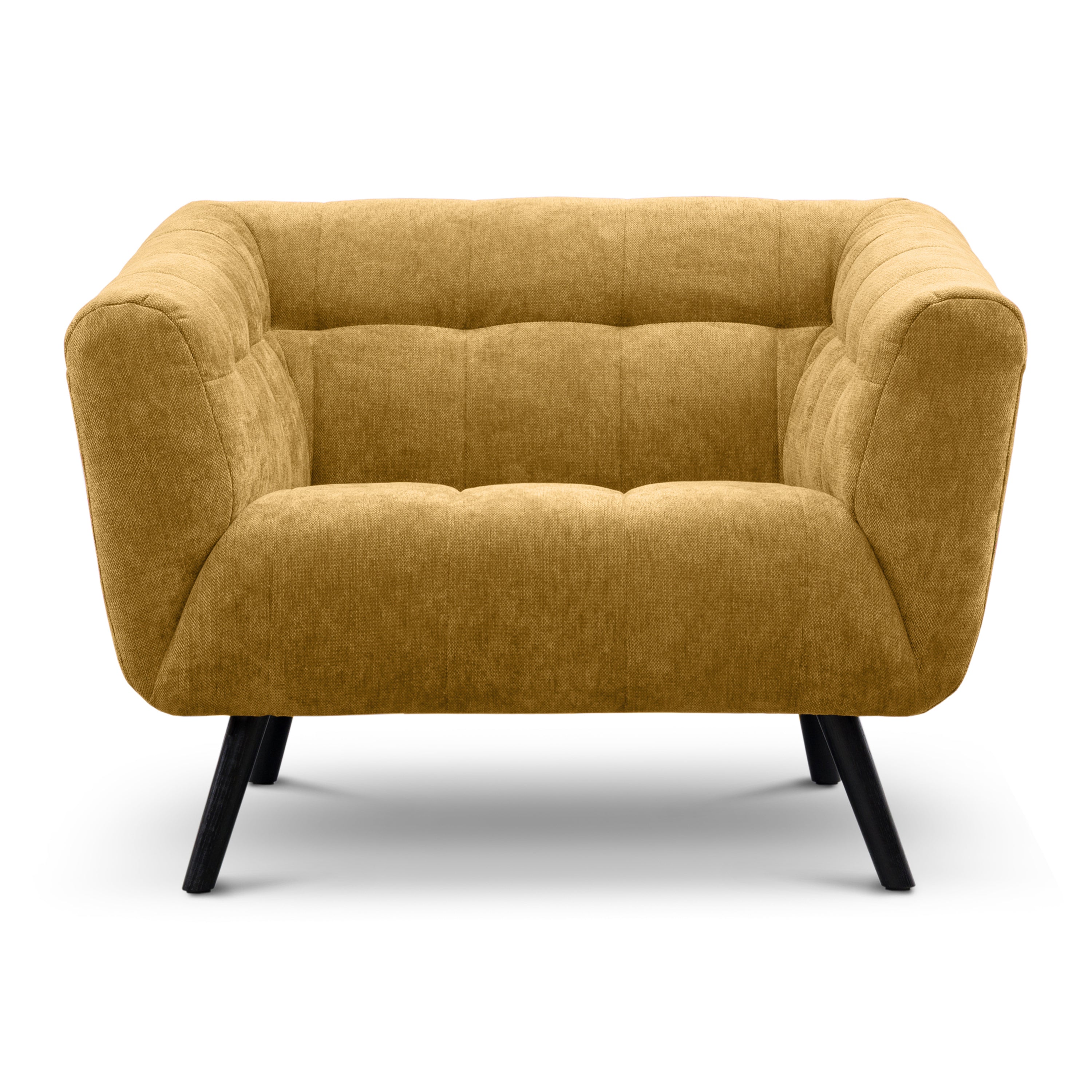 - Brede armleuningen die het ontwerp z’n volle, uitnodigende vorm geven