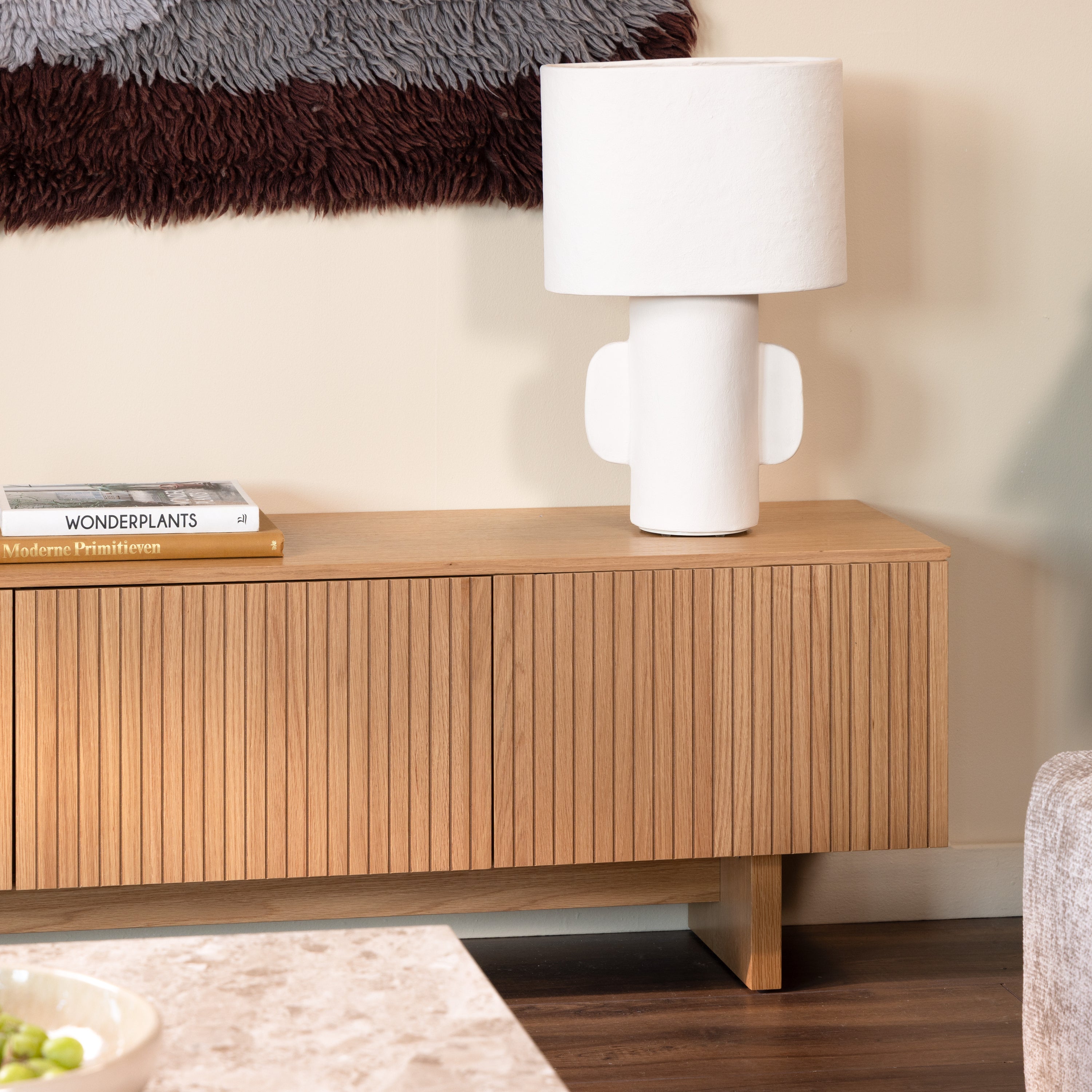 - Van spaanplaat met eikenfineer en verticale lijnen die je meteen doen denken aan de jaren '70