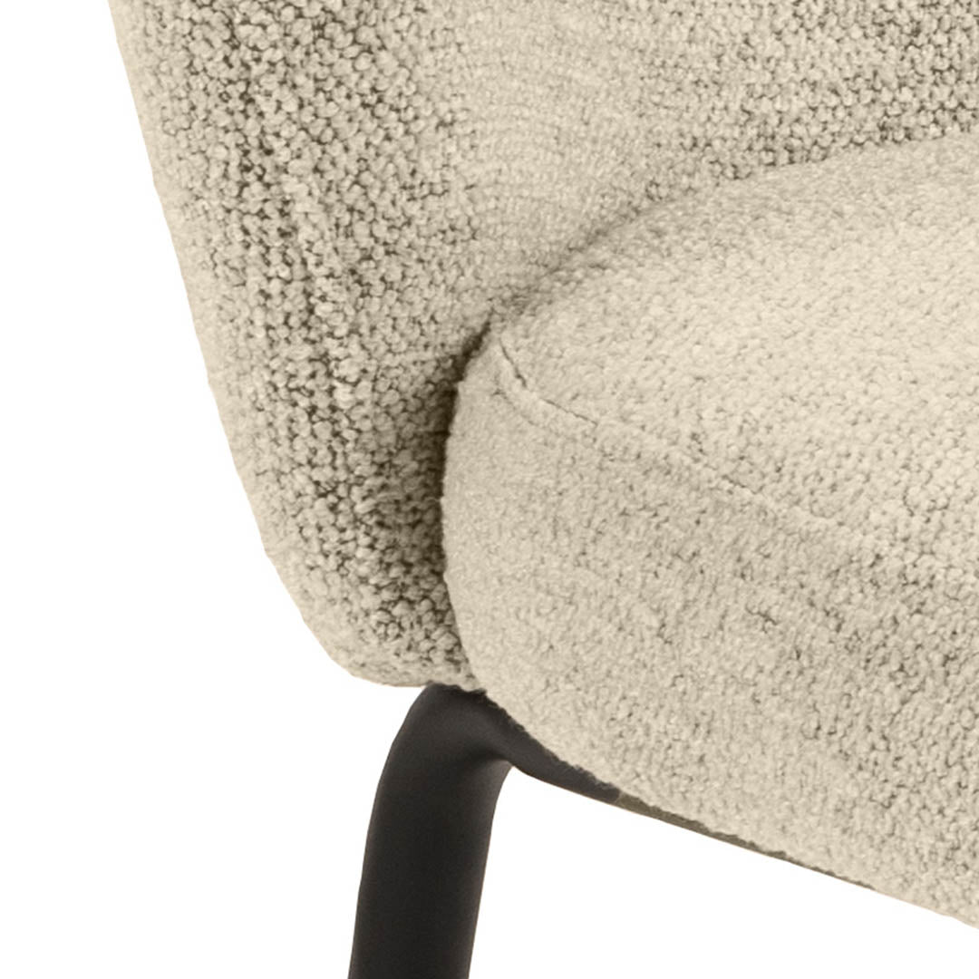 - De bouclé stof bestaat uit 96% polyester en 4% acryl