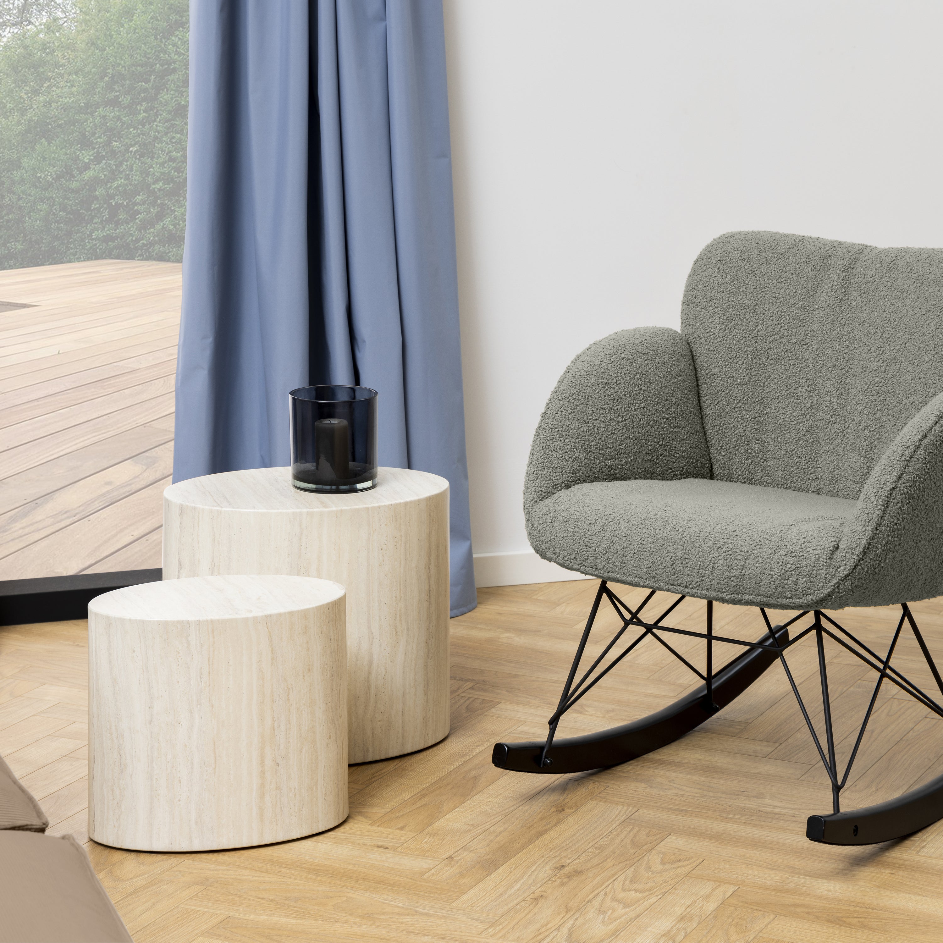 - Gemaakt van MDF, afgewerkt met folie met travertine look