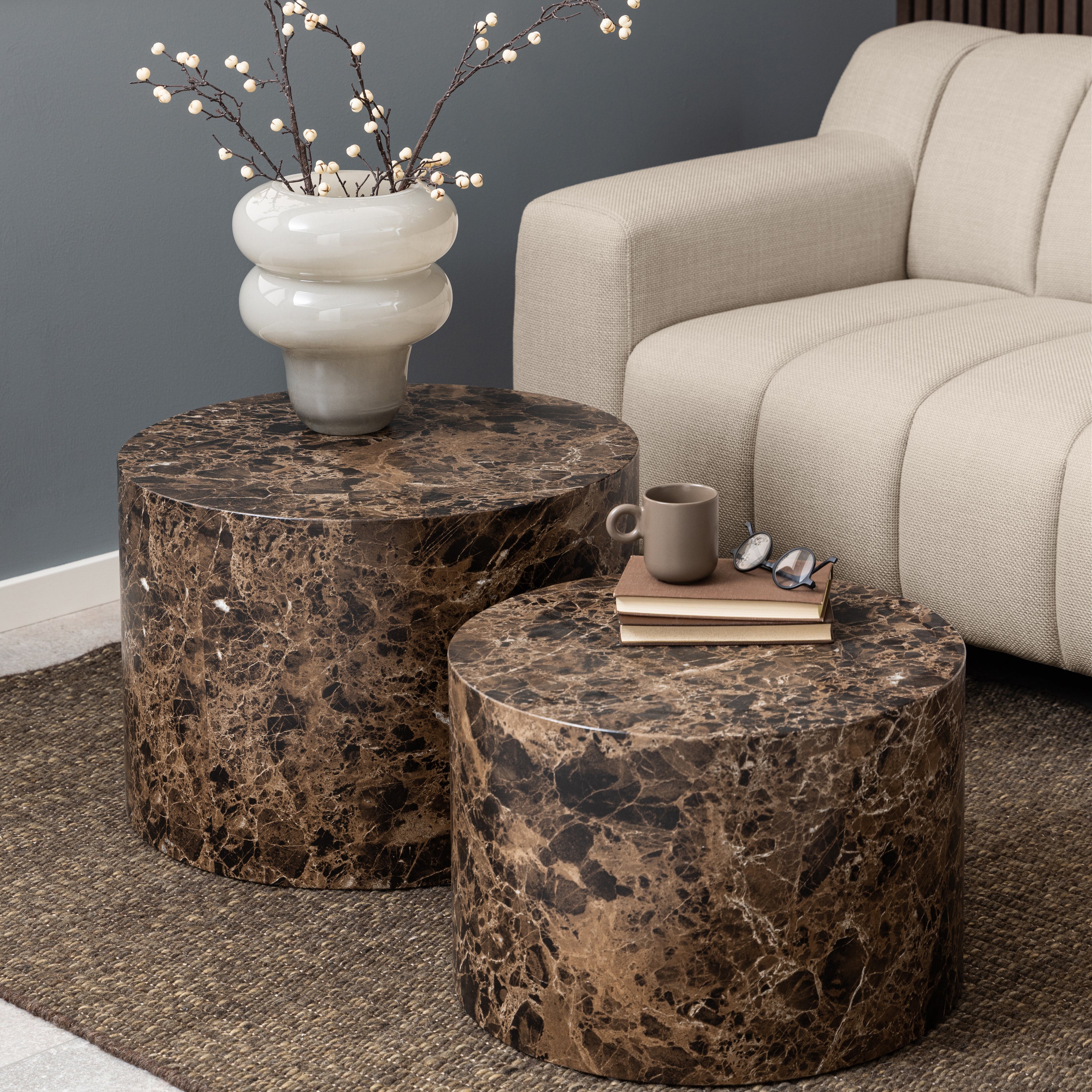 - Set van twee ronde bijzettafels van H 33/40 x Ø 50/58 cm