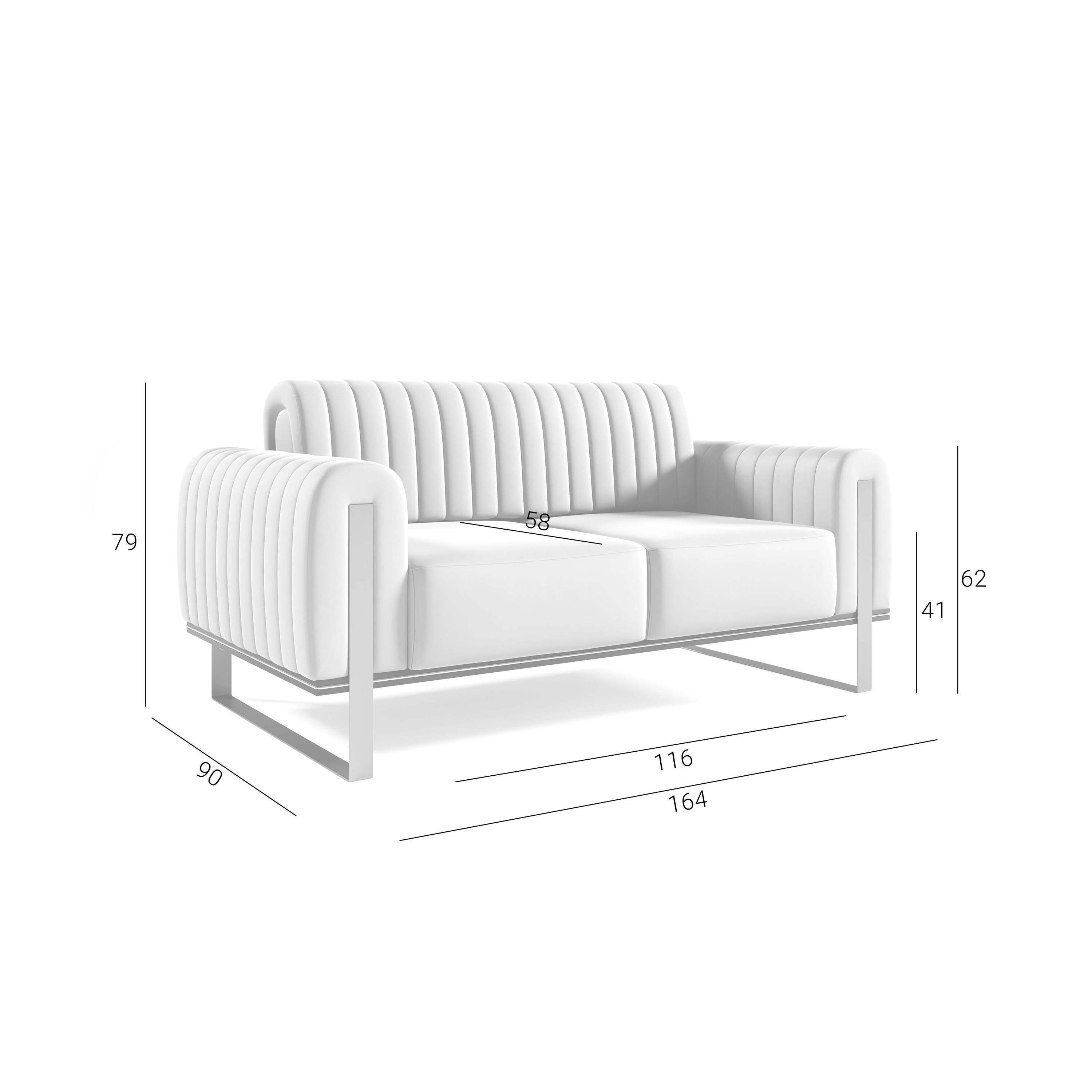- Deze 2-zitter meet H 79 x B 164 x D 90 cm