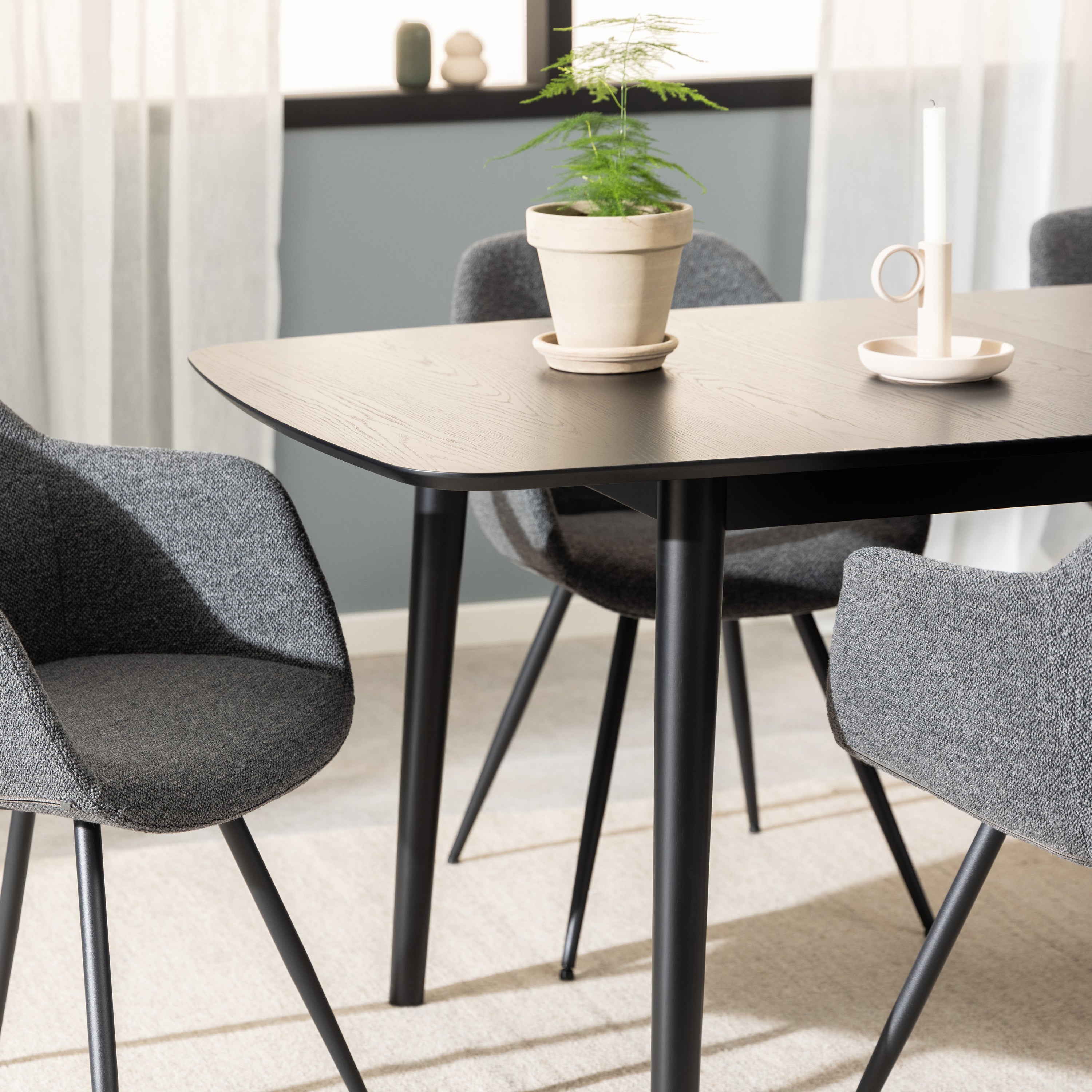 De tafel is eenvoudig uit te schuiven tot een breedte van 220 centimeter. Zo kun je altijd genoeg stoelen kwijt aan de eetkamertafel. Handig: het verlengdeel van het tafelblad klapt weg onder de tafel, waardoor je deze niet afzonderlijk hoeft op te bergen. Breedte: 180 - 220 cm