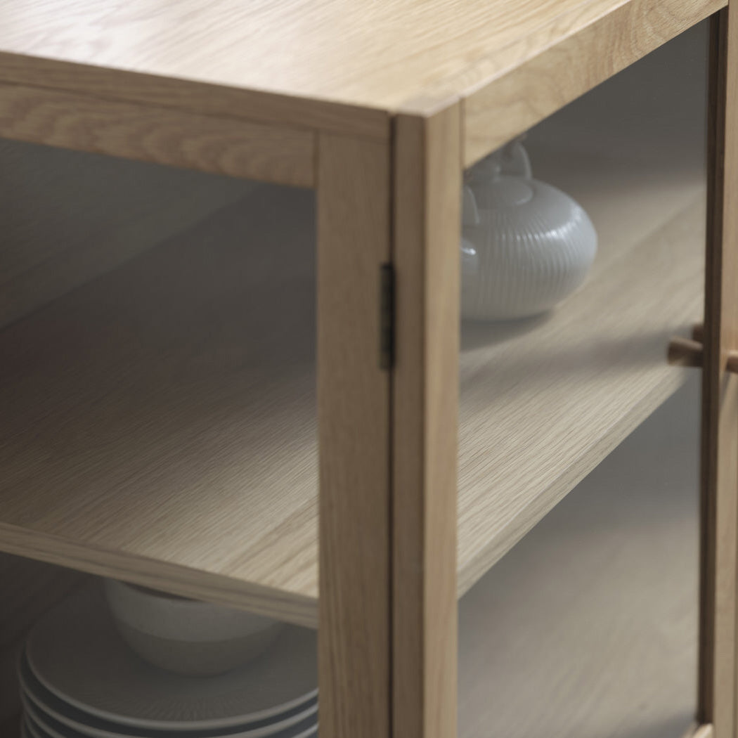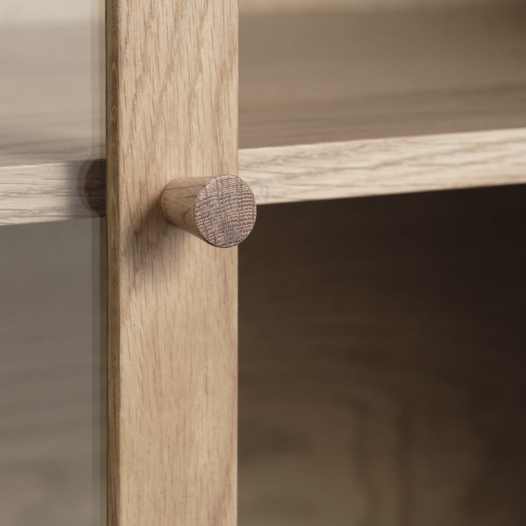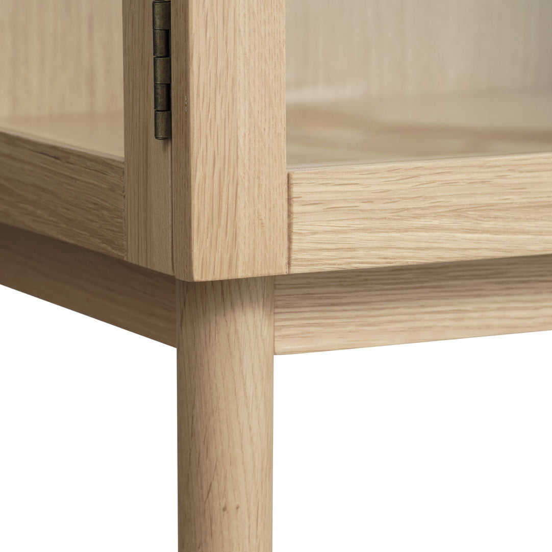 - Het minimalistische design met zijn strakke lijnen en natuurlijke materialen maakt deze vitrinekast tot een tijdloze klassieker