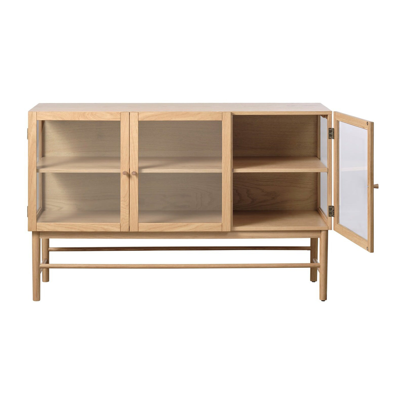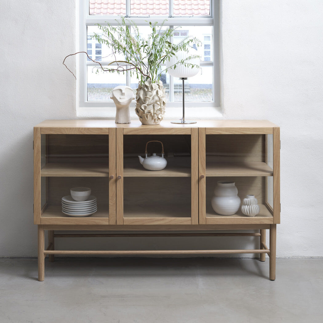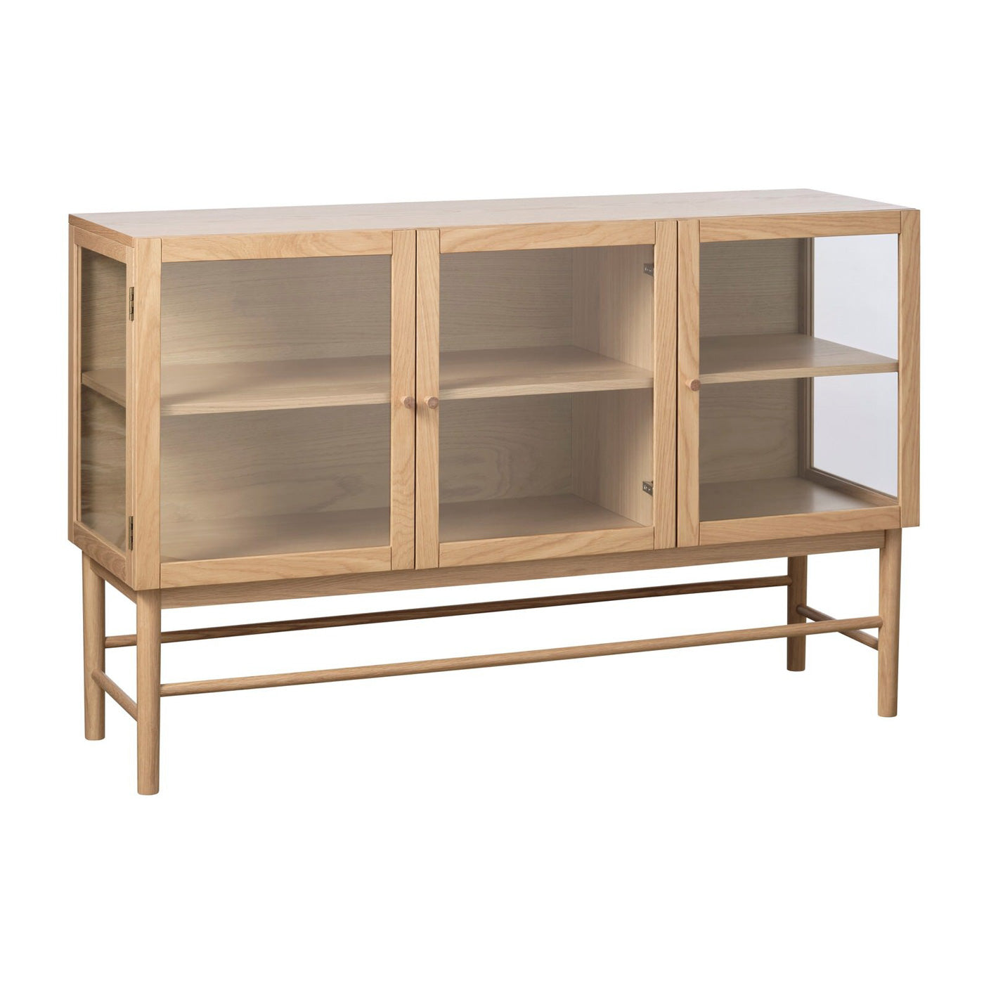 - Het minimalistische design met zijn strakke lijnen en natuurlijke materialen maakt deze vitrinekast tot een tijdloze klassieker