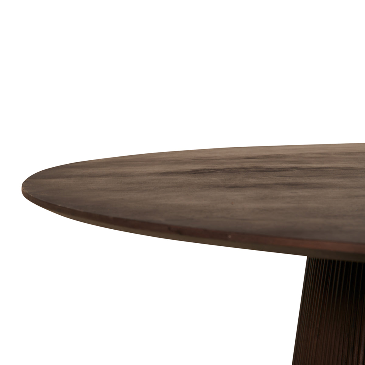- De ronde vorm en verticale latjes geven deze tafel echt een retro look, mooi!