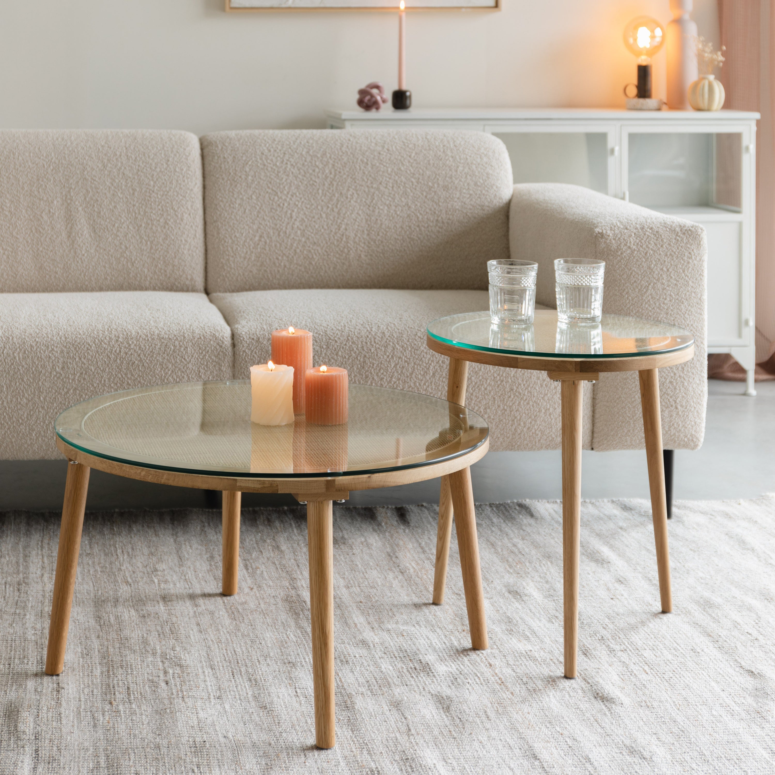 - Onderstel gemaakt van eikenhout en tafelblad van glas