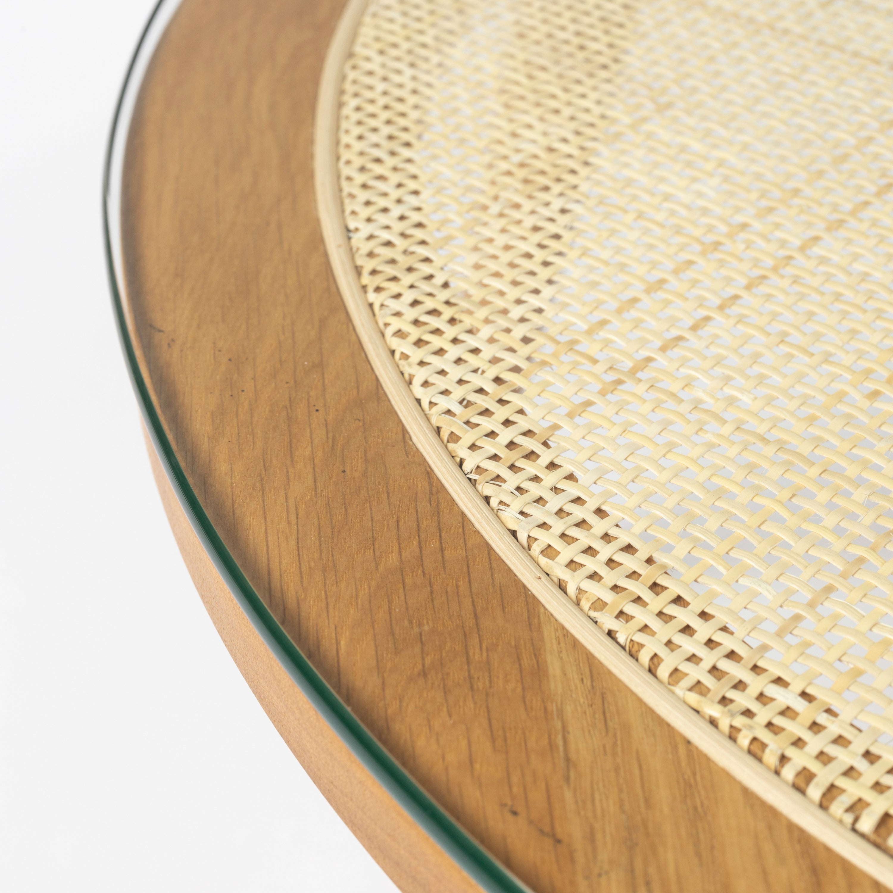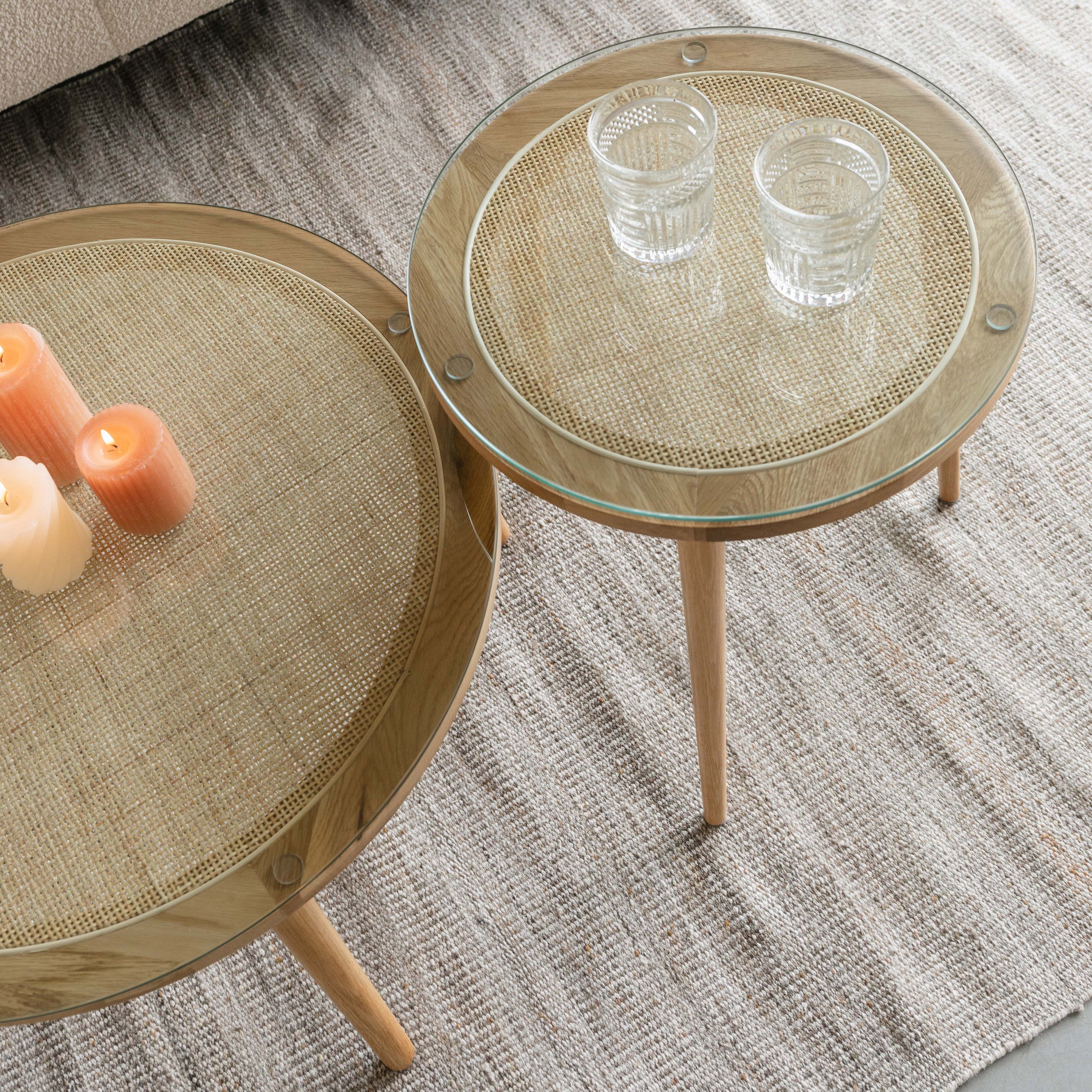 - Het eikenhout en rotan geven deze tafel een natuurlijke uitstraling