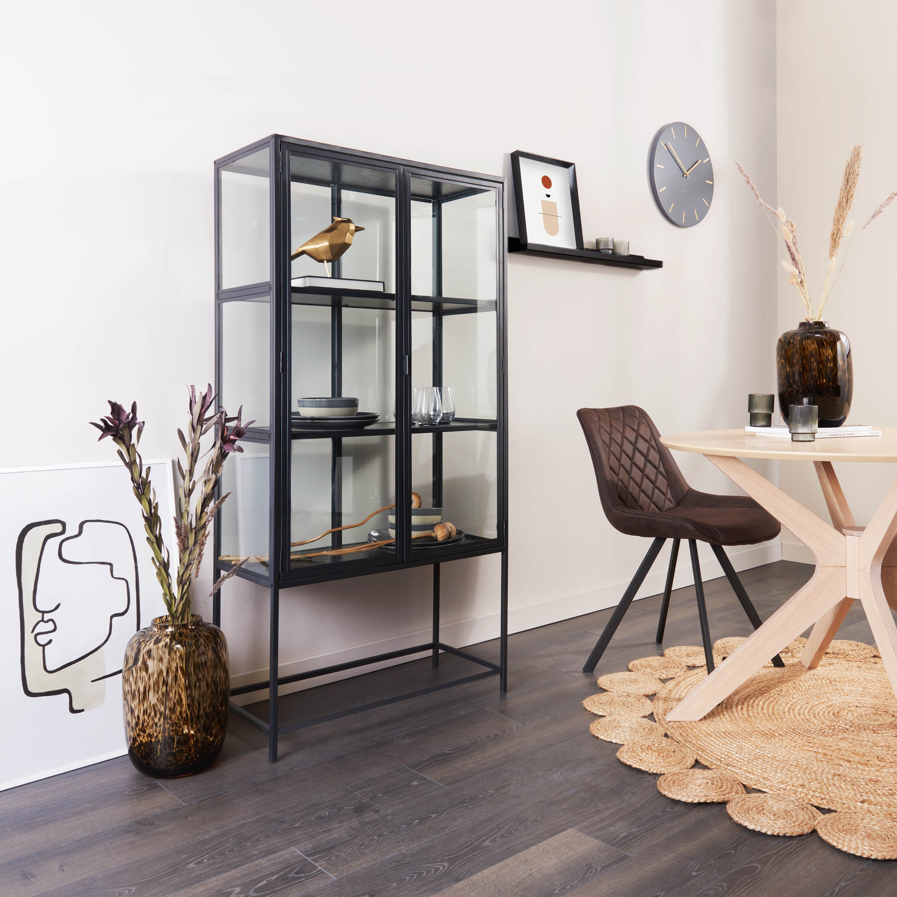 In de Jaxon vitrinekast van by fonQ kun jij jouw mooiste decoratiespullen tentoonstellen. Hij heeft namelijk mooie glazen deuren waar je alles goed doorheen kunt zien! De planken zijn gemaakt van MDF en kunnen dus genoeg dragen voor je.
