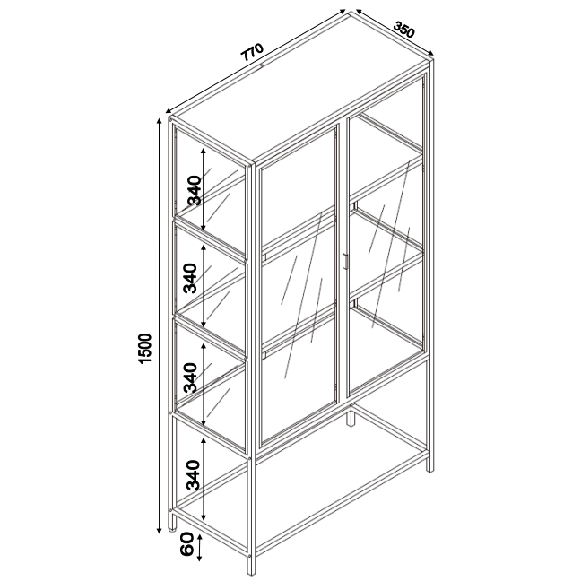 - Het onderstel, het frame en de deuren zijn van zwart gepoedercoat metaal