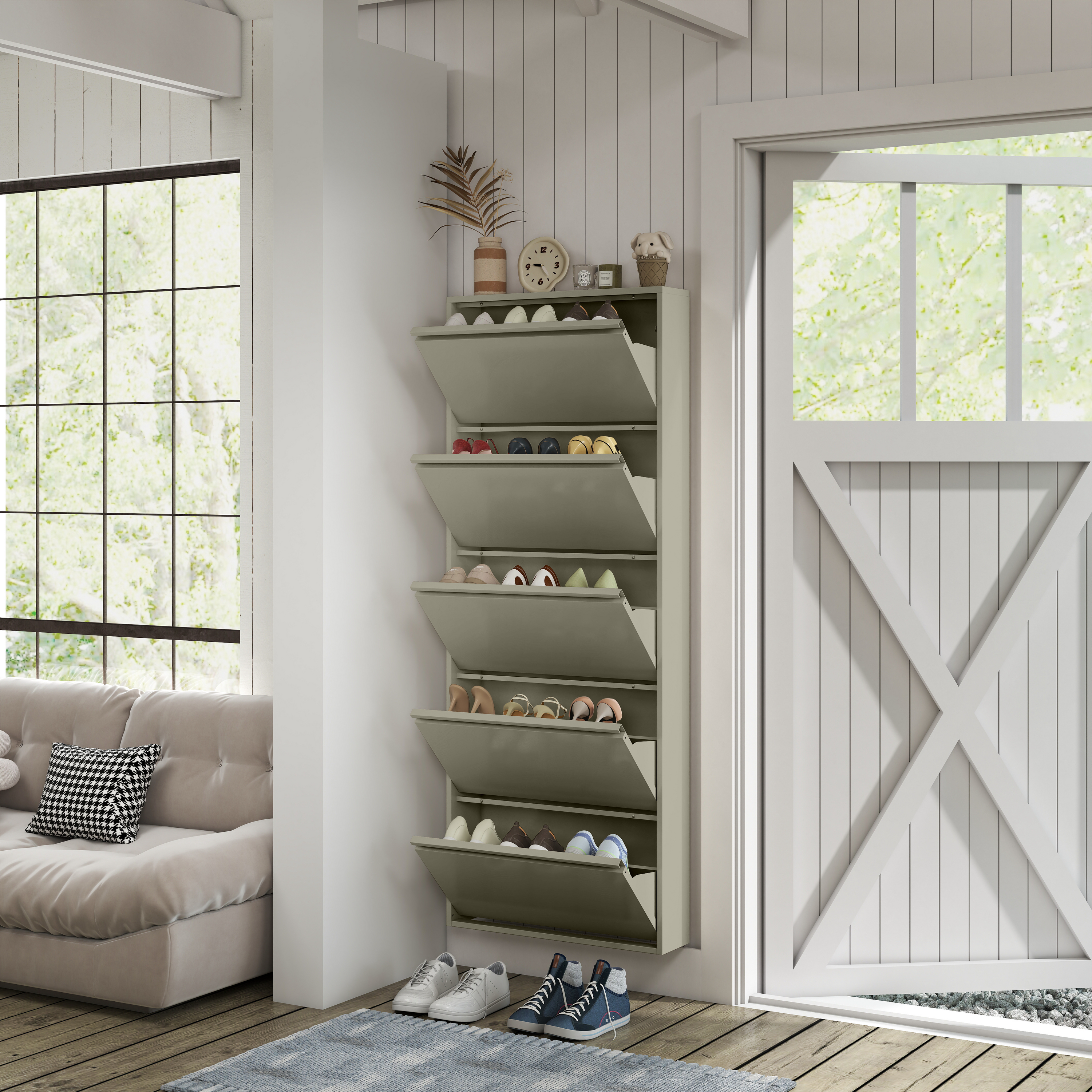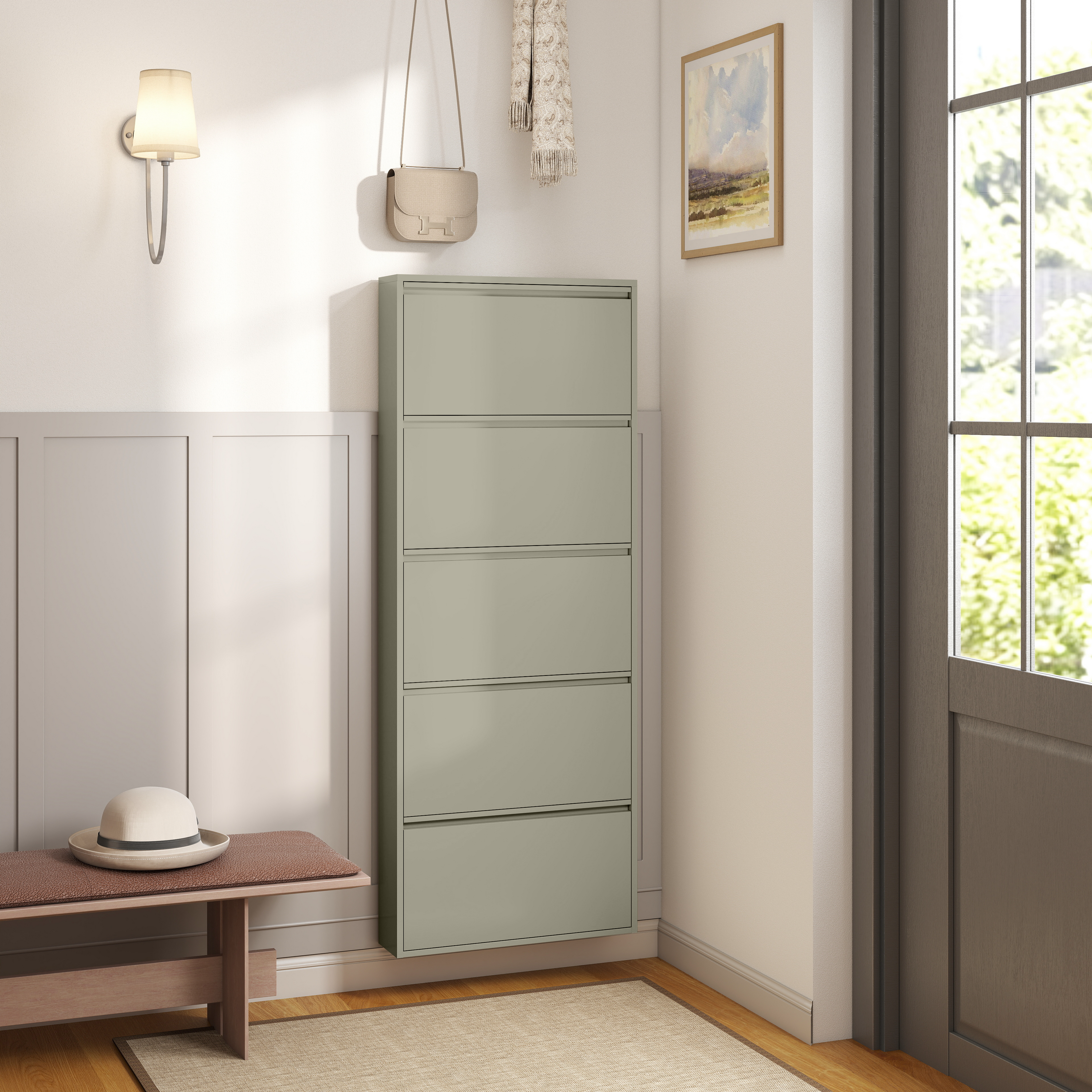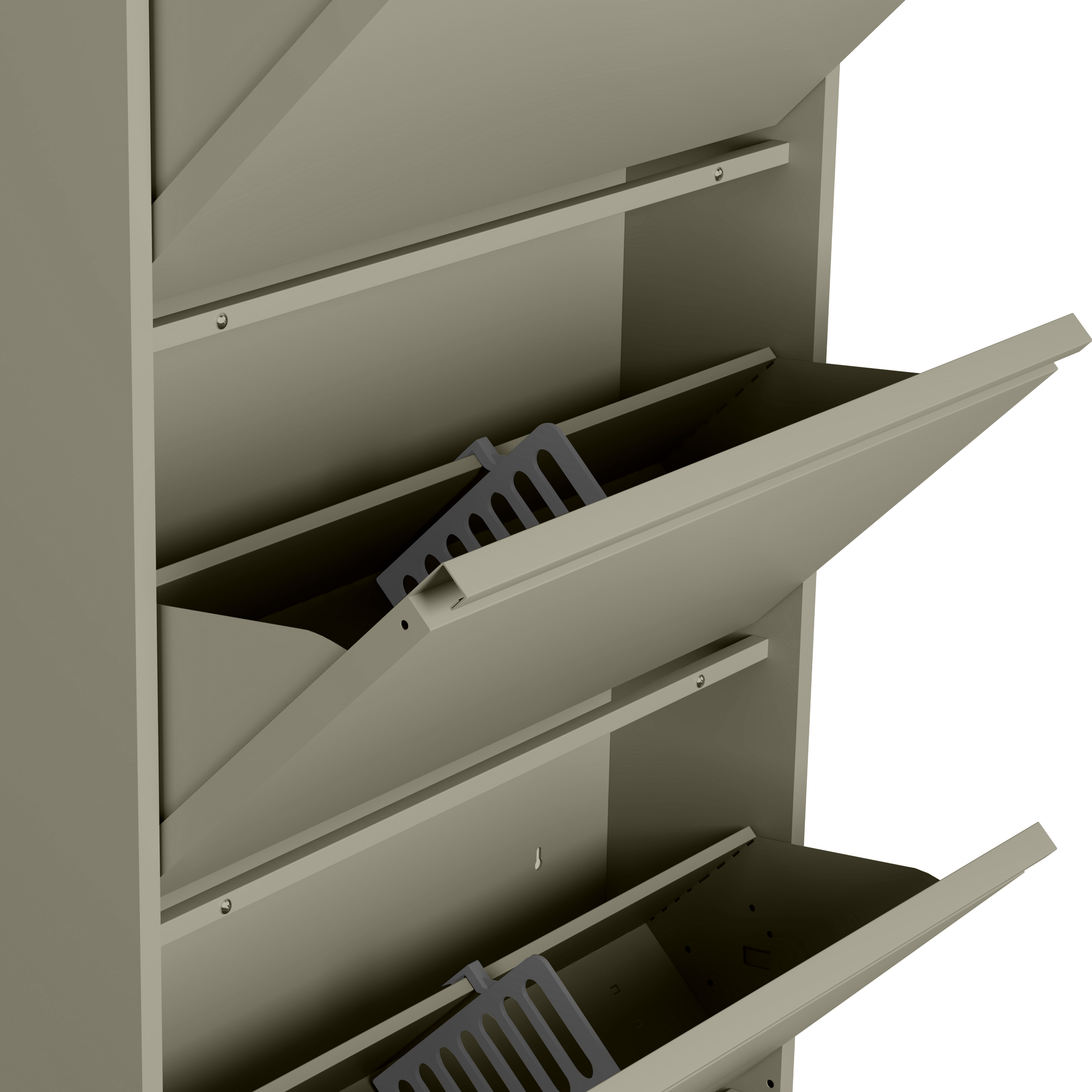 - Ruimte voor 2 à 3 paar schoenen per vak