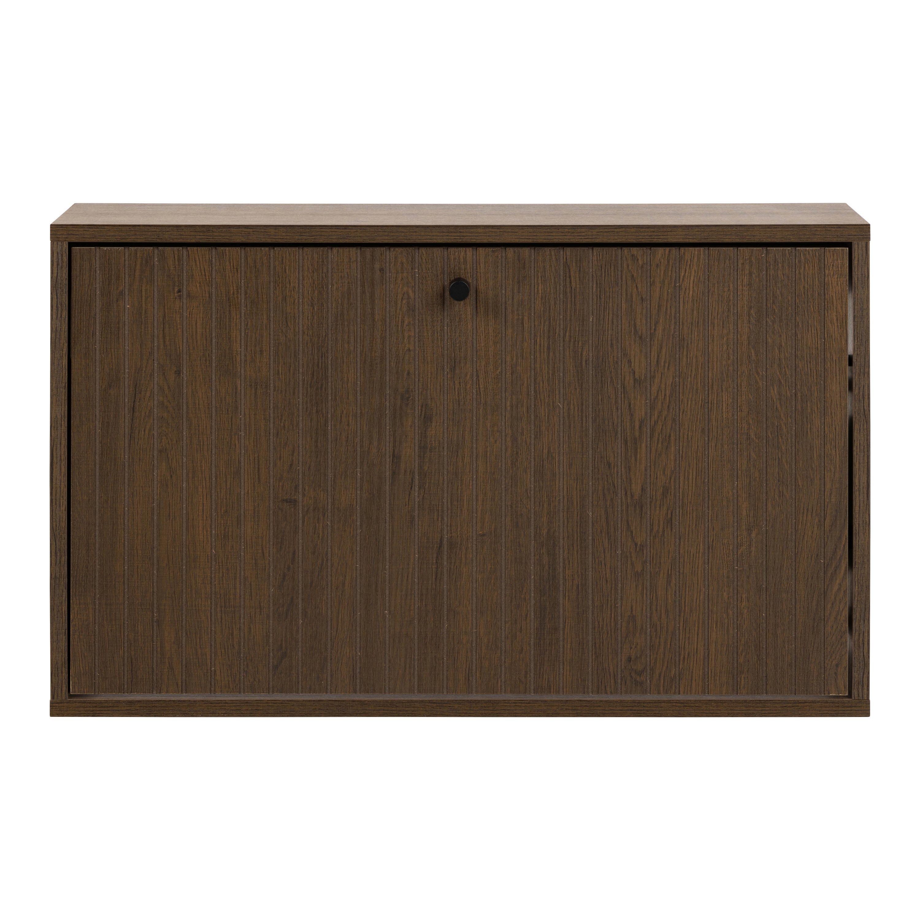 - Het lamellenfront speelt met licht en schaduw, en geeft de kast een natuurlijke en industriële vibe