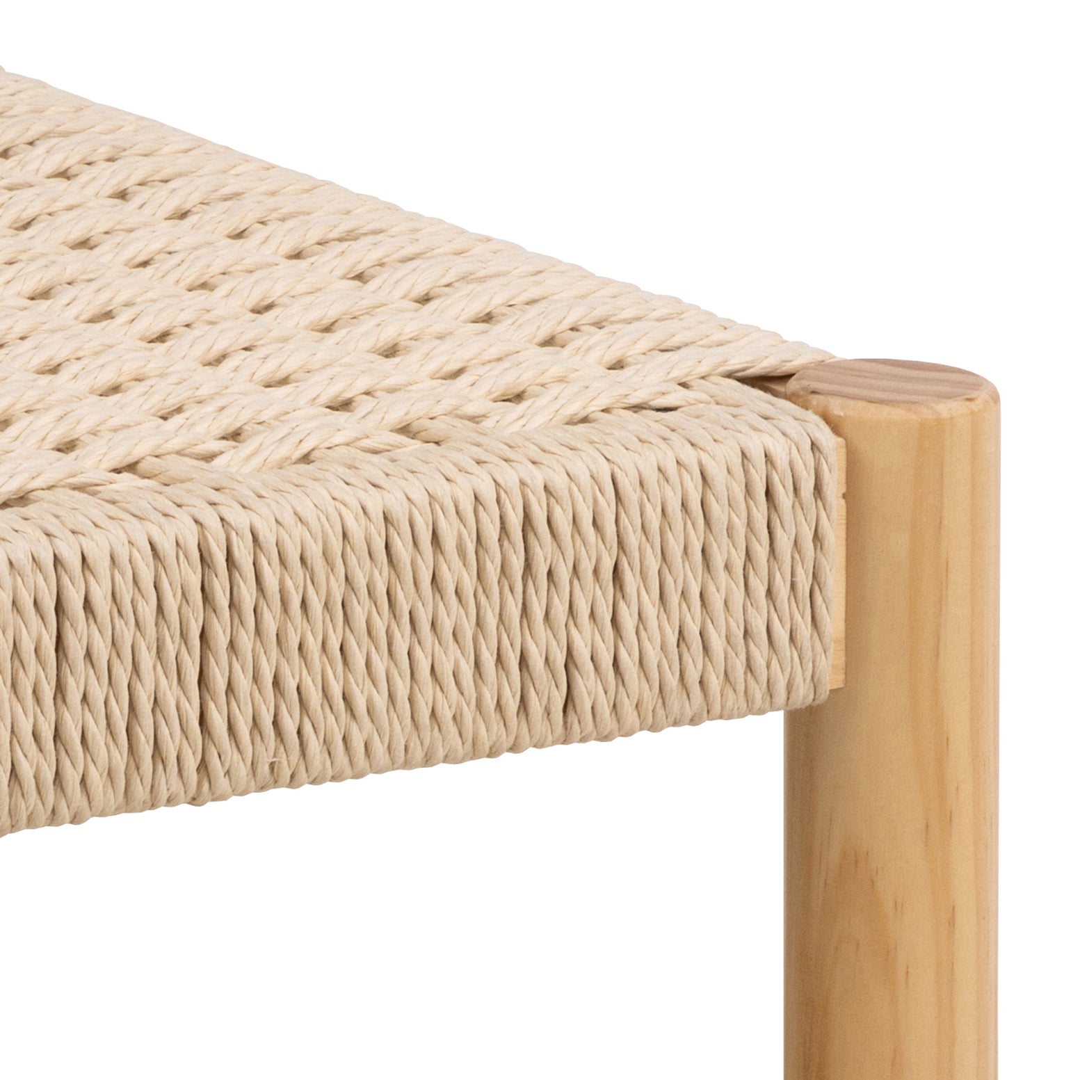 - De gevlochten zitting van papier en onderstel met gelakt dennenhout geeft een gezellig accent
