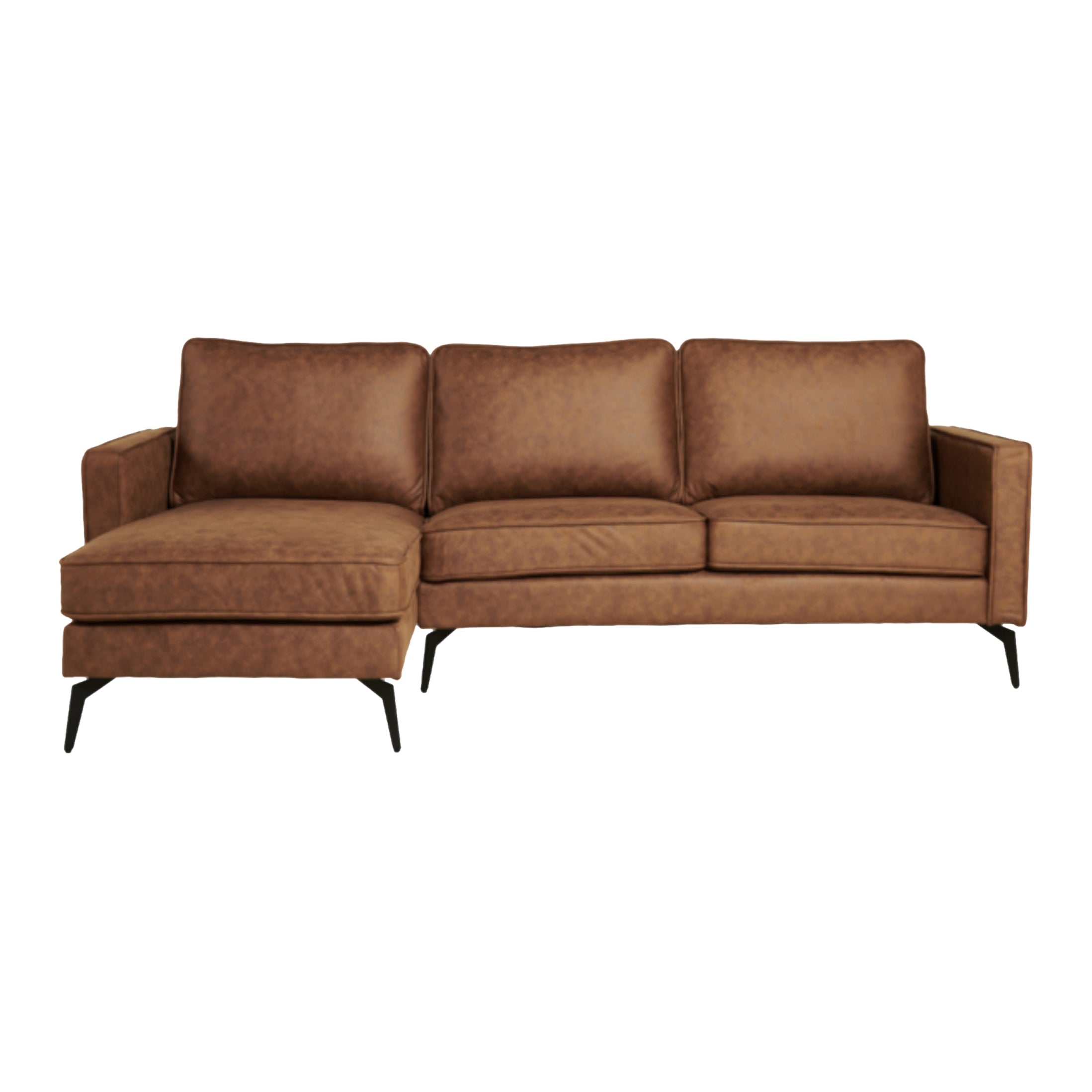 by fonQ Milan Hoekbank met Chaise Longue 3-zitsbank - Links / Rechts - Microleder - Cognac