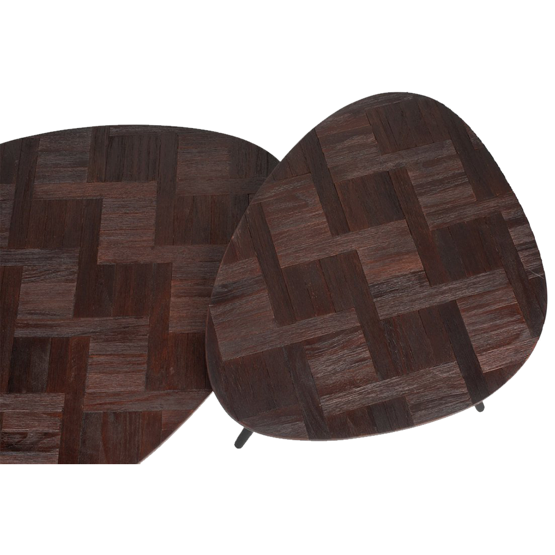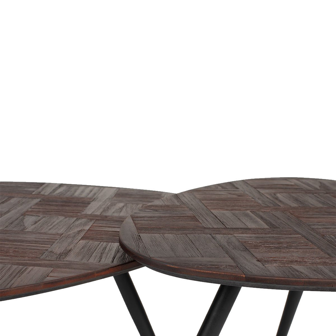 - De tafels hebben verschillende hoogtes voor een speels effect