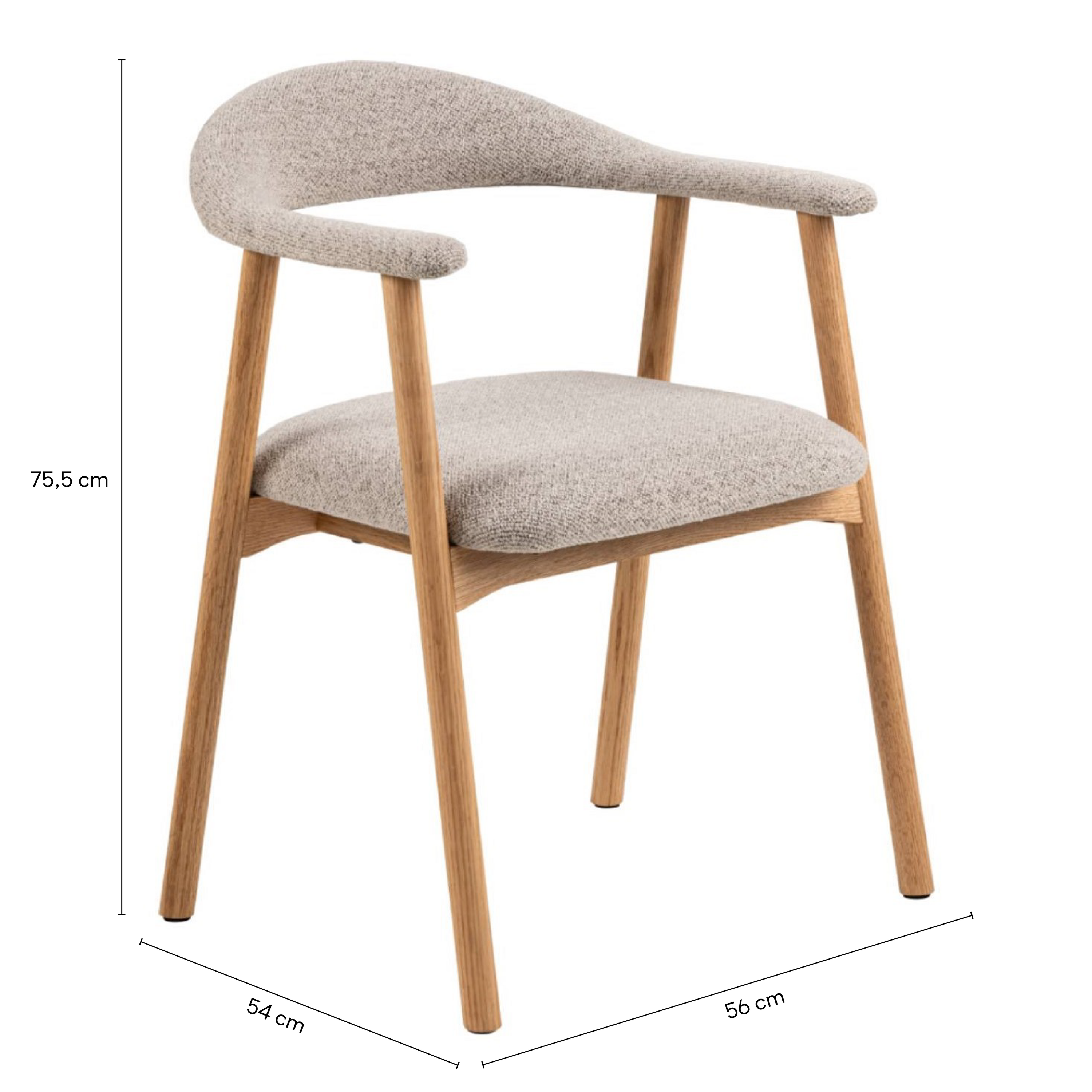- Een zachte zitting van polyester en een licht eikenhouten frame