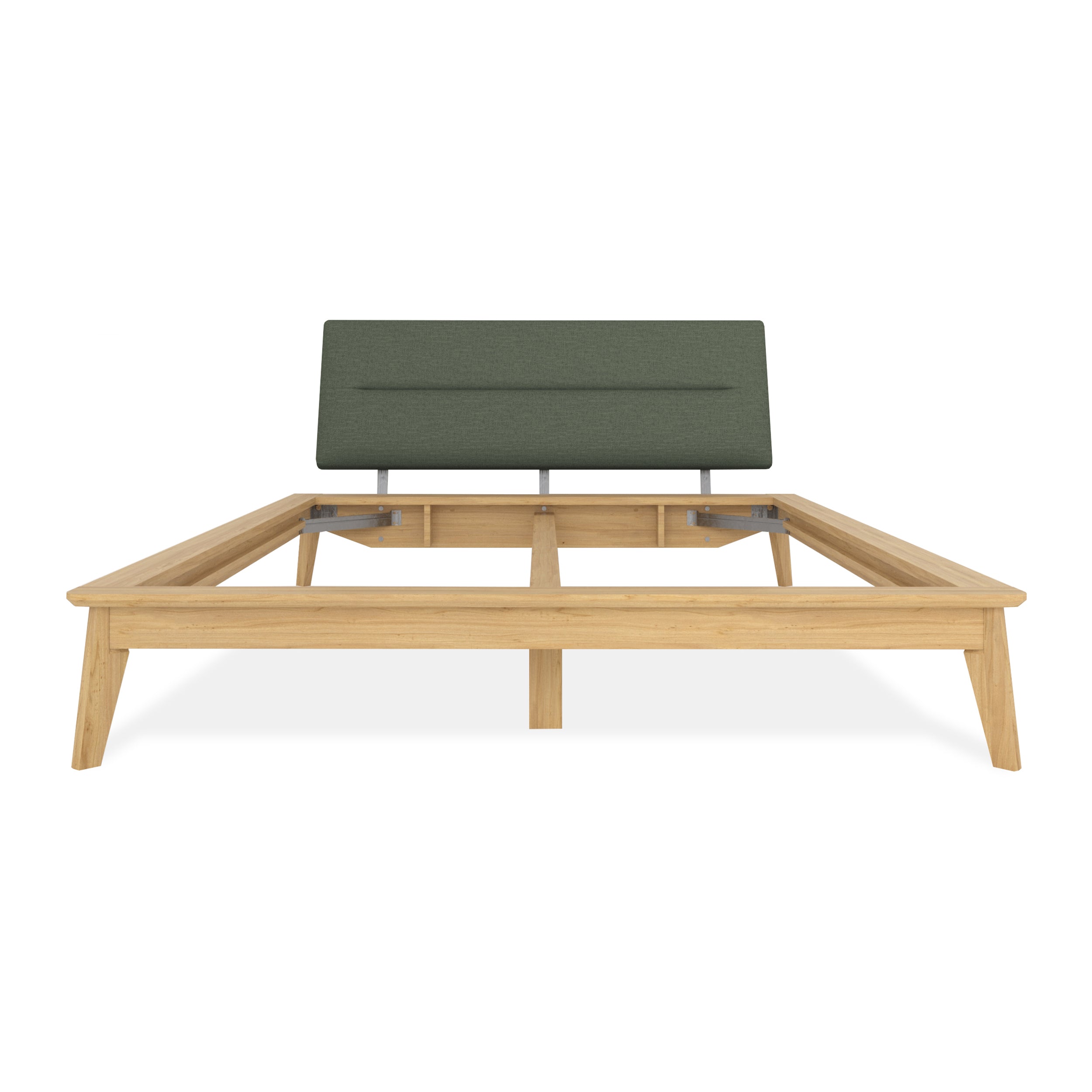 - Stevig houten frame met zachte stoffering en stijlvol hoofdbord