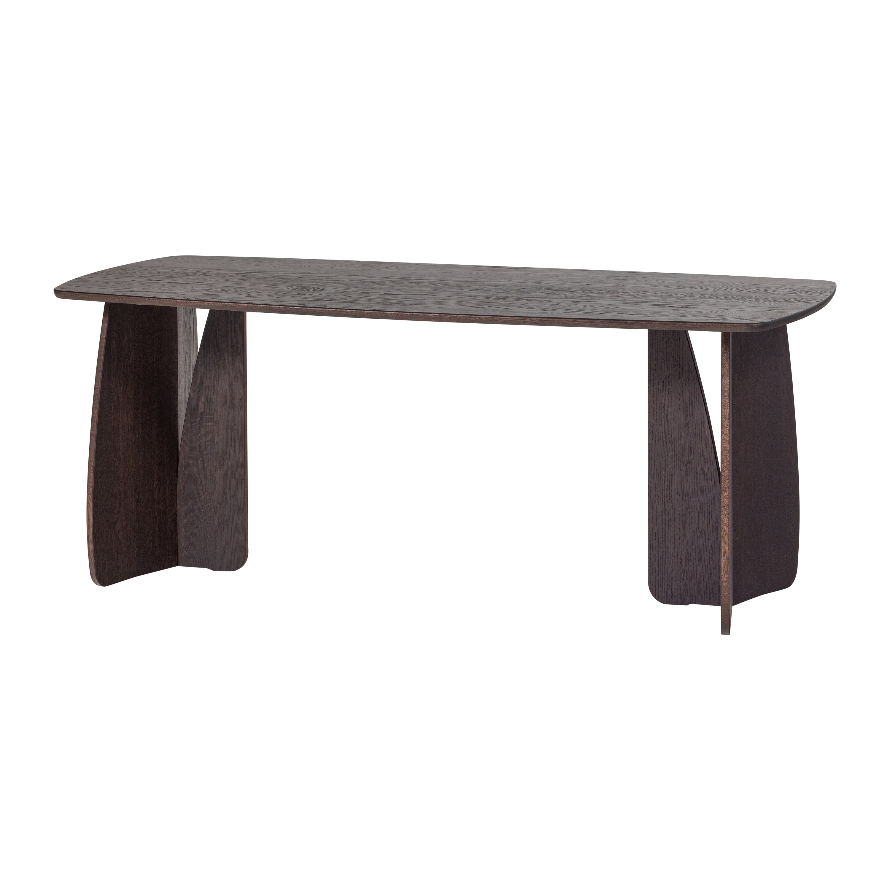 - Deens ovaal blad voor een zachte, ruimtelijke uitstraling met sculpturale poten en een gebogen belijning