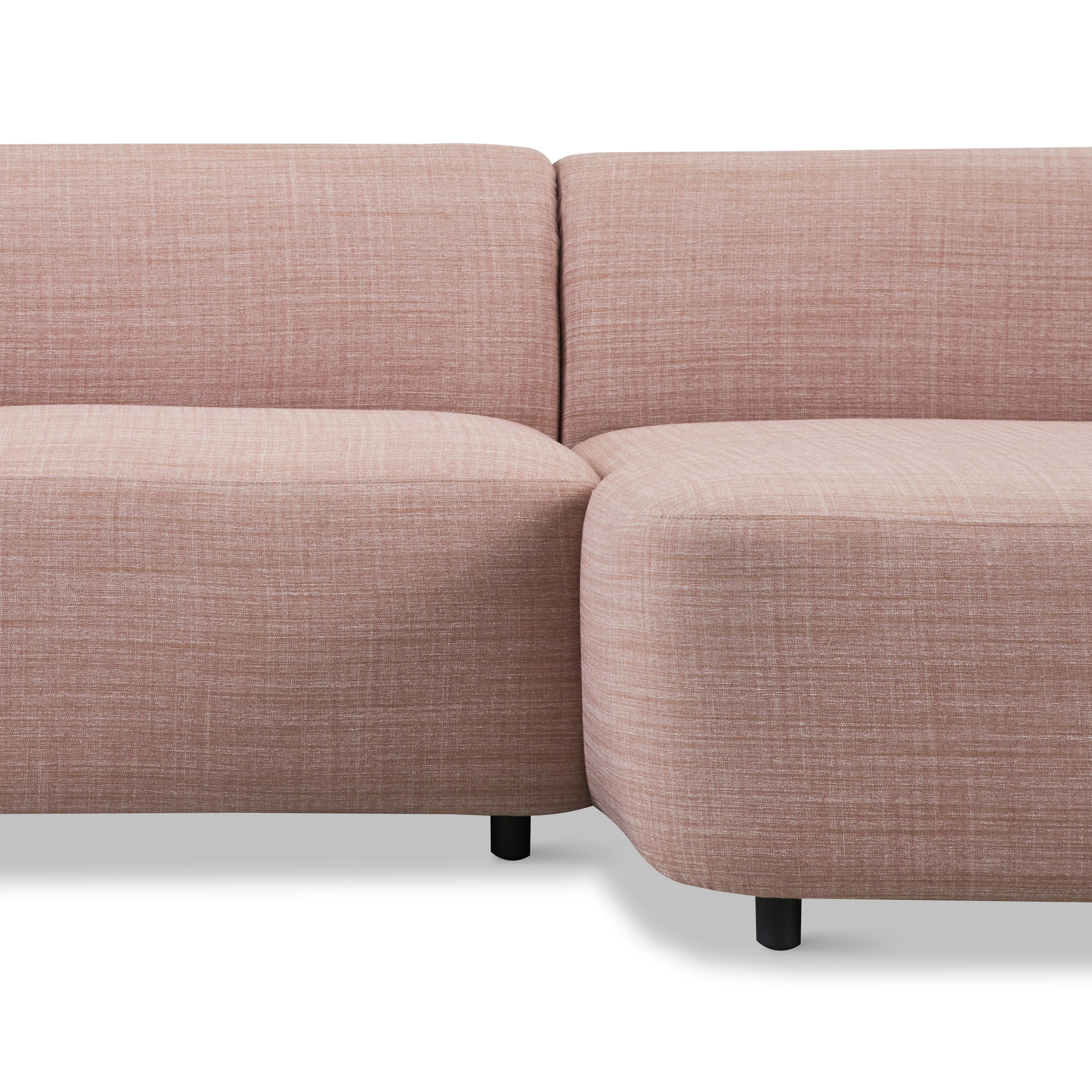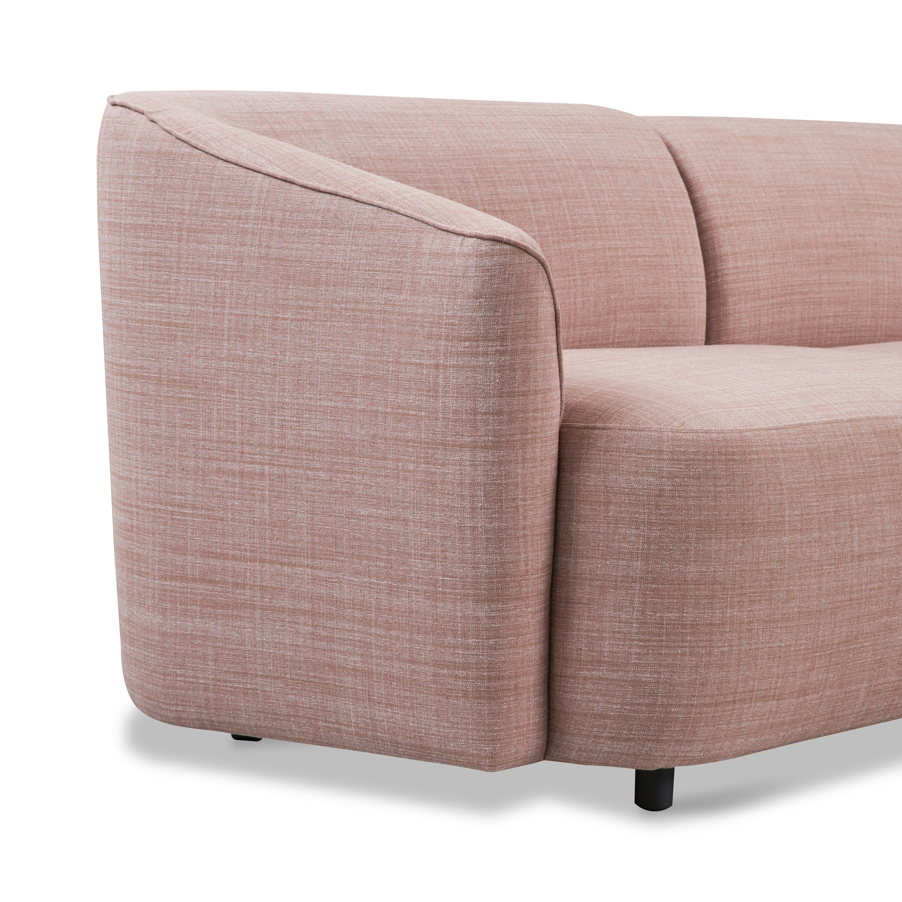- Afgeronde vormen en een schuin aflopende armleuning