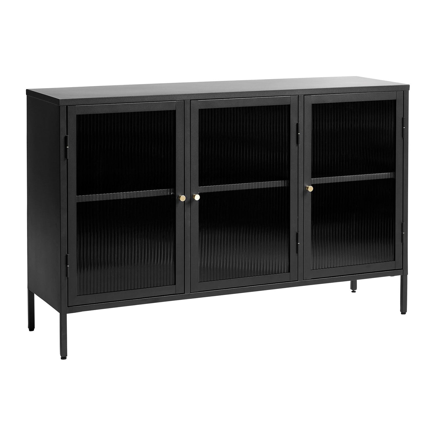 - De ruitjes met reliëf glas geven een verfijnde look aan de stoere kast