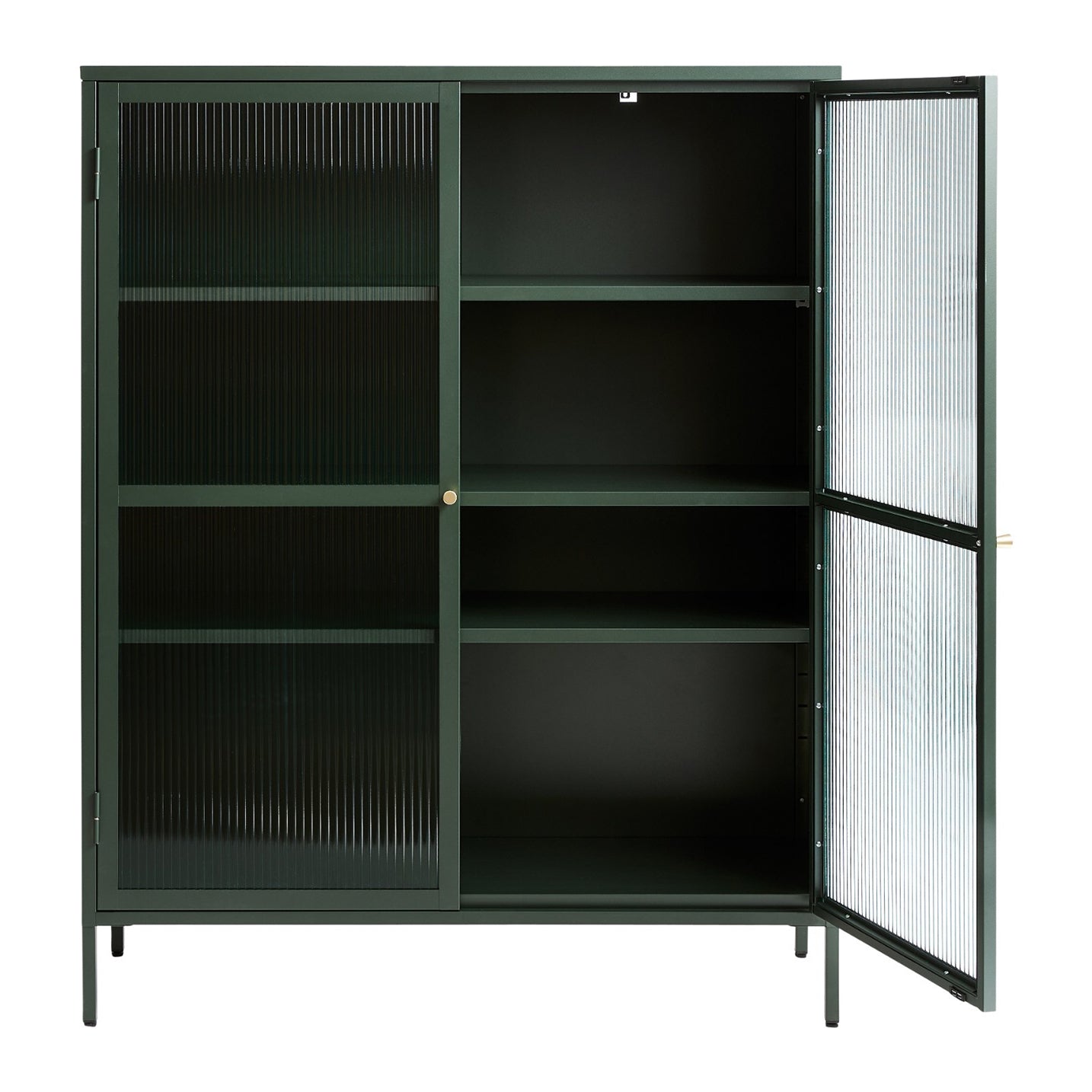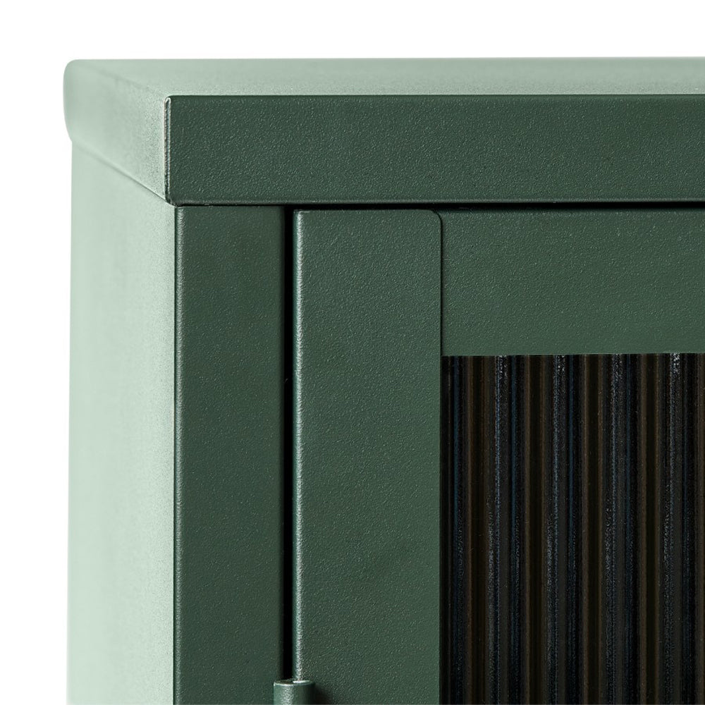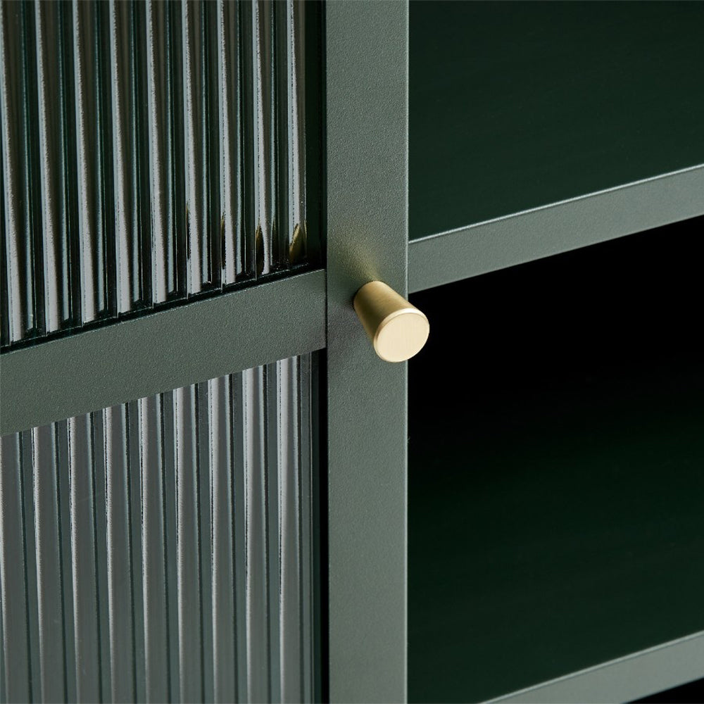 - De ruitjes met reliëf glas geven een verfijnde look aan de stoere kast