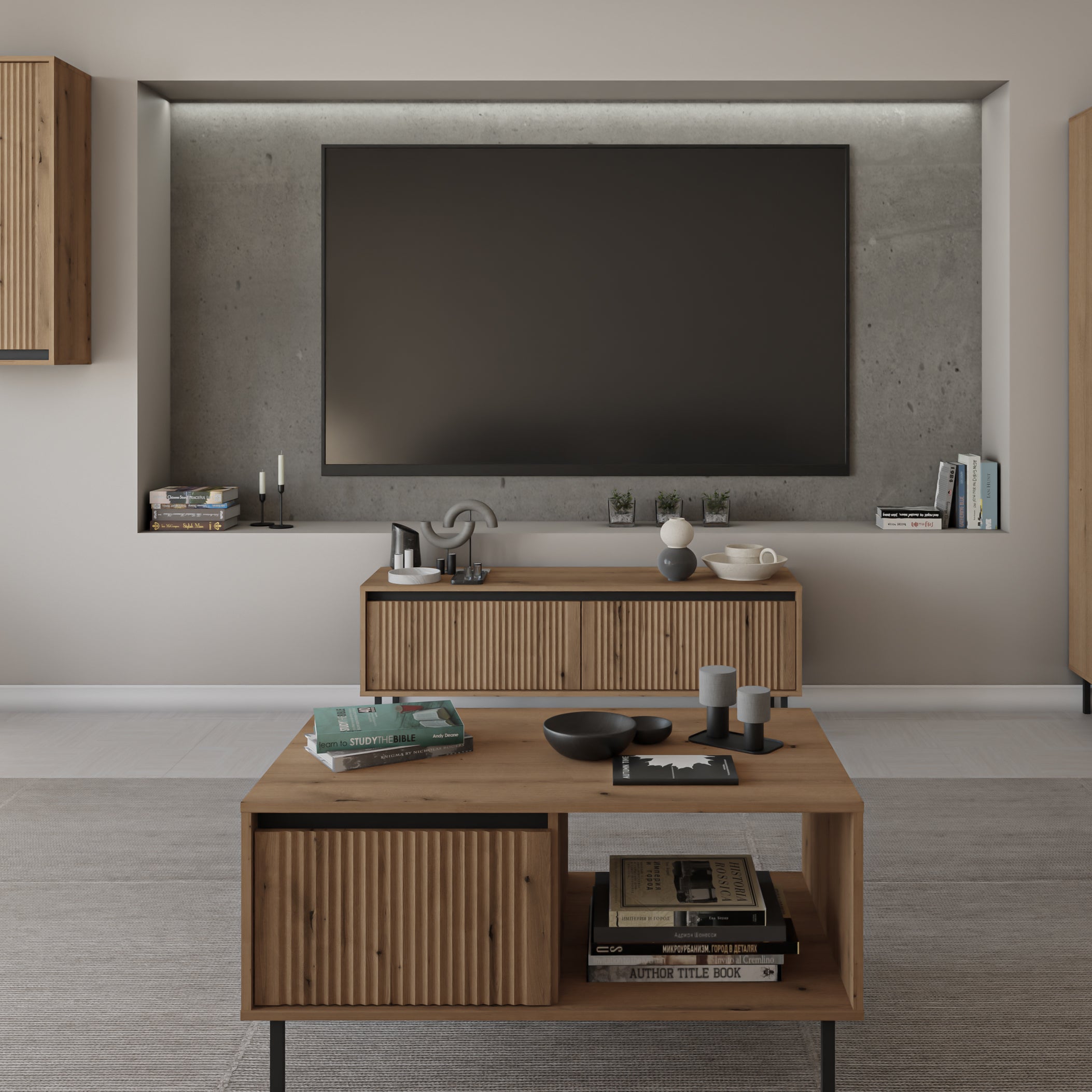 - Harmonie van MDF, metaal en glas voor een stoere en toch verfijnde afwerking