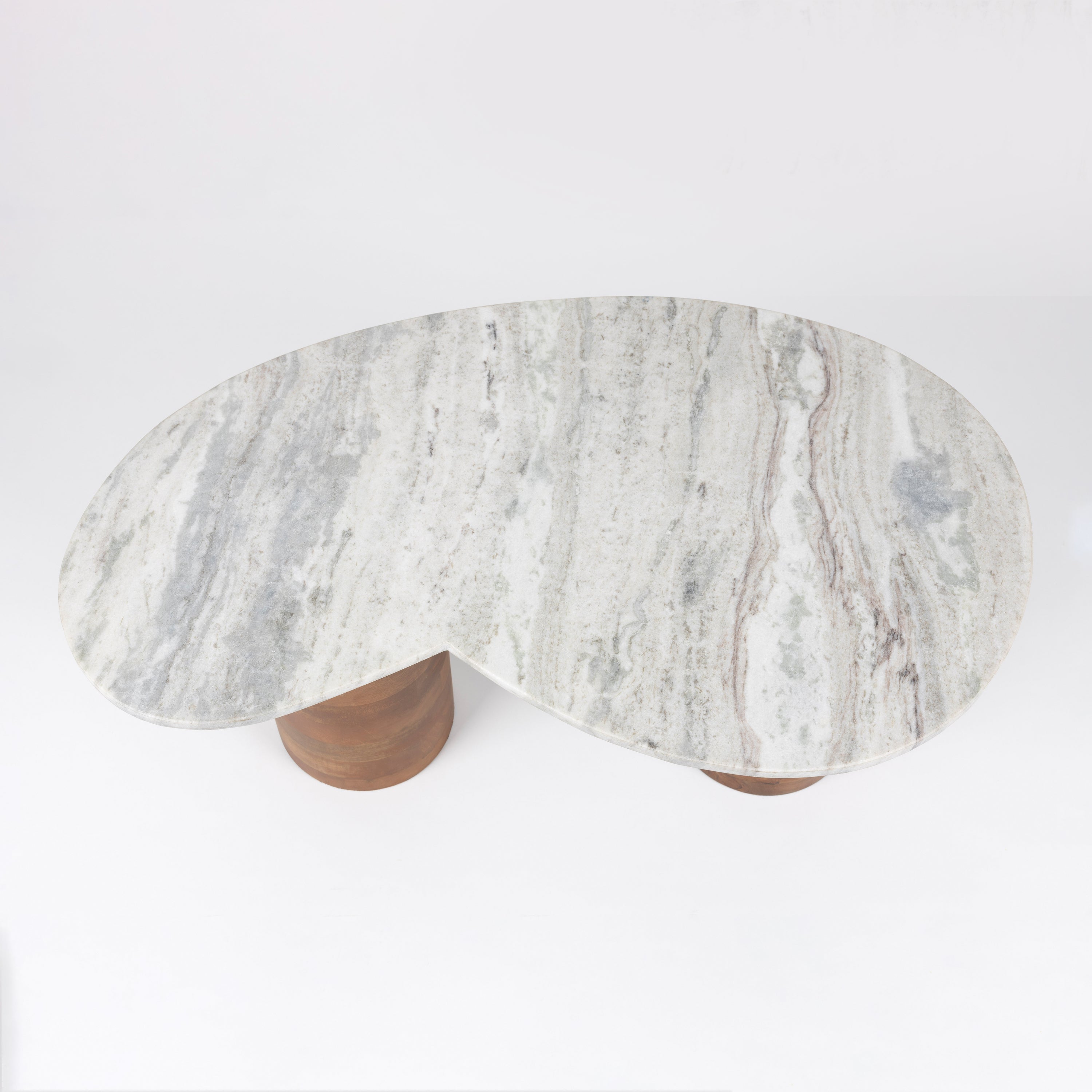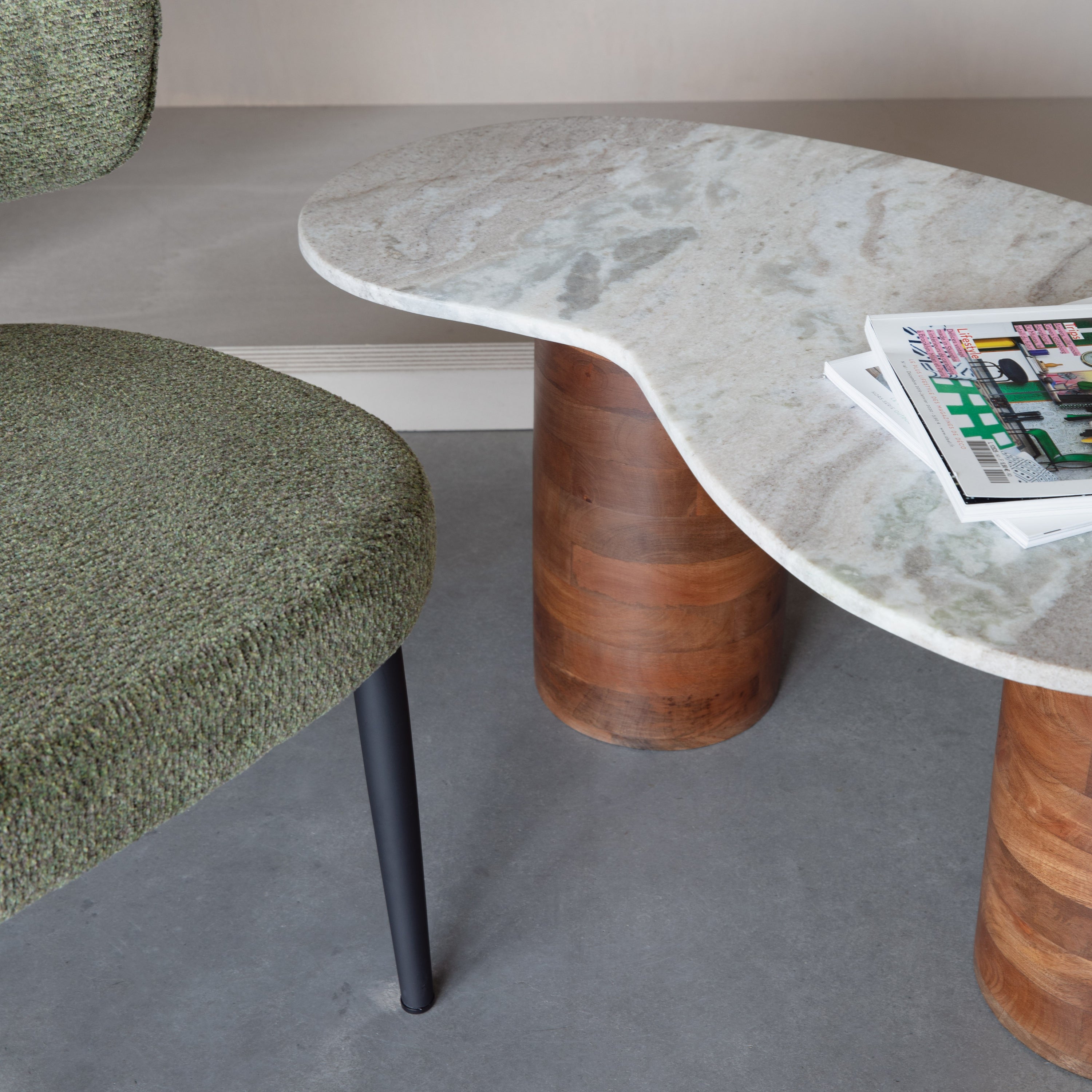 - Stijlvolle poten van mangohout en tafelblad van massief marmer