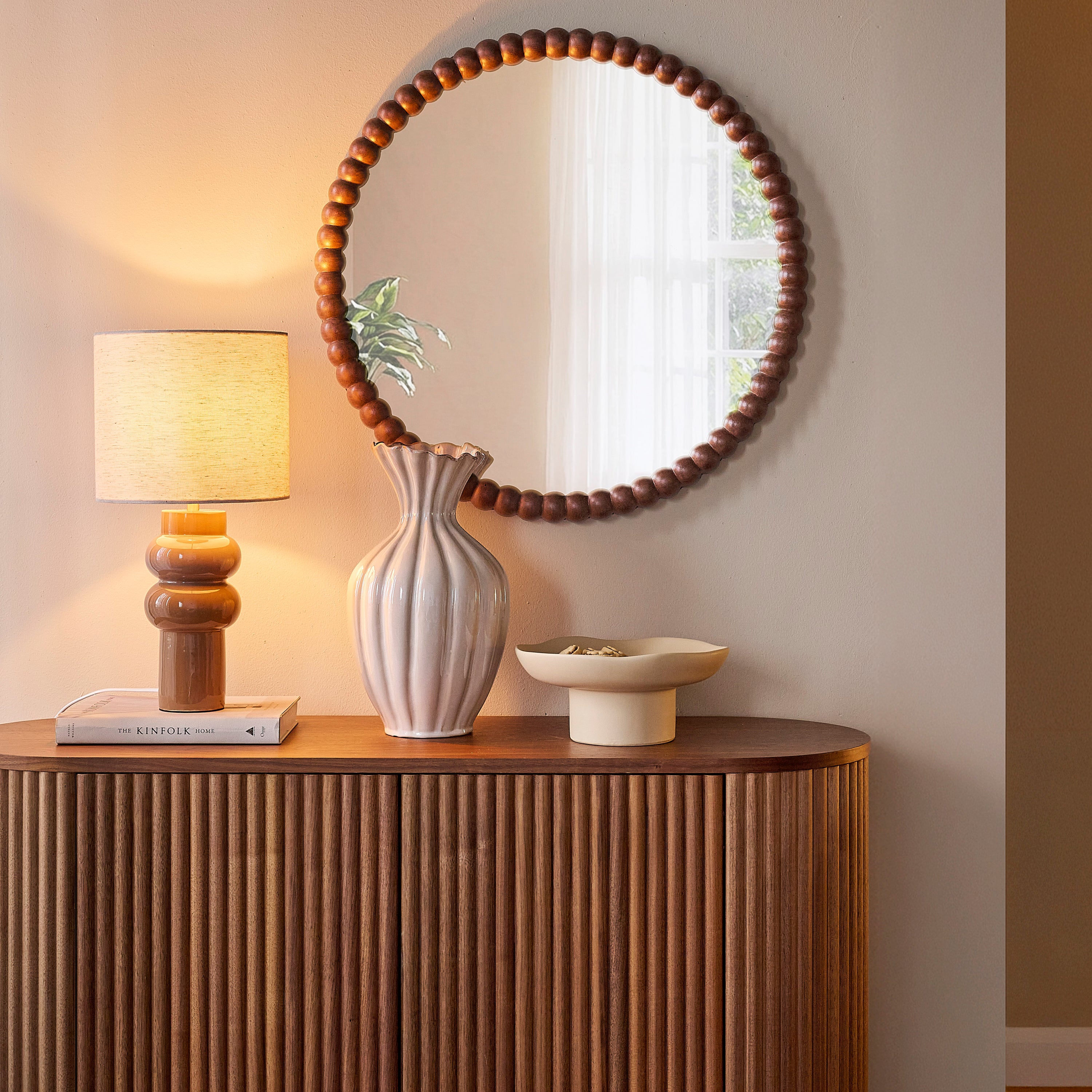 by fonQ Pompom Spiegel Ø 71 cm - Walnoot