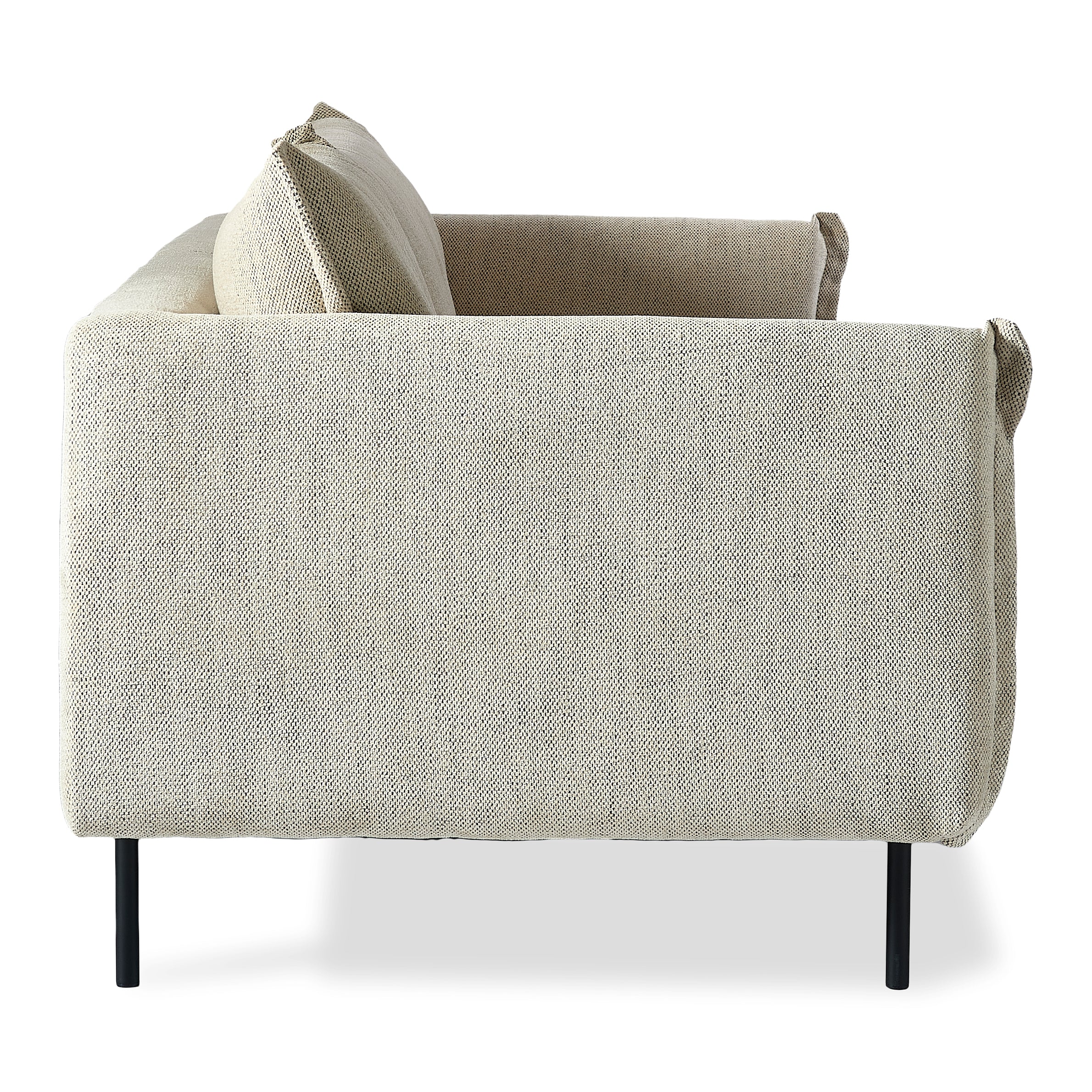 - De hoge metalen poten geven de bank een luchtige en open uitstraling