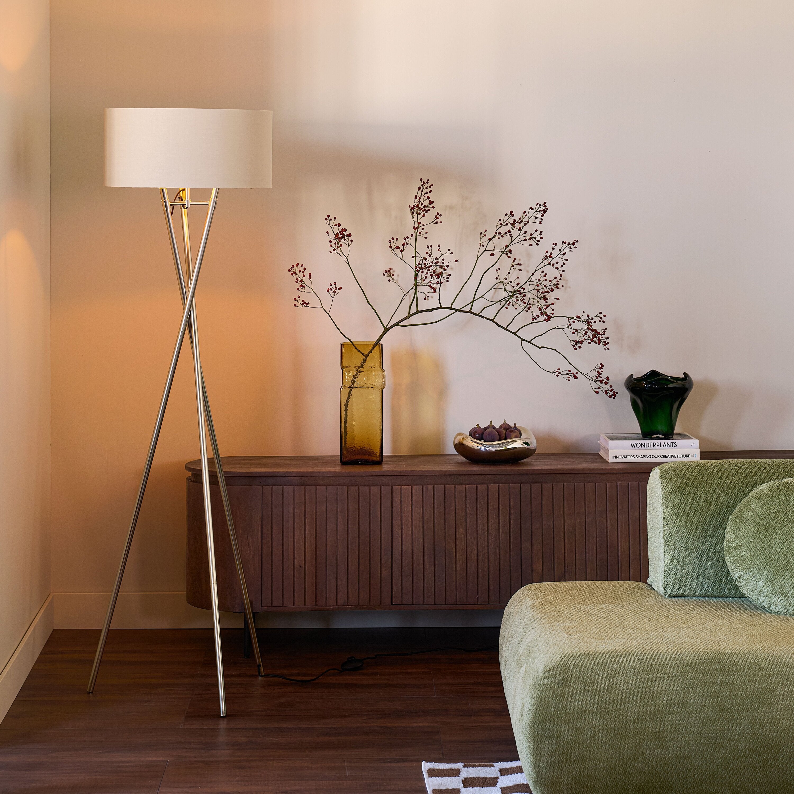 - Stijlvolle mix van een stoffen kap en stoere slanke poten