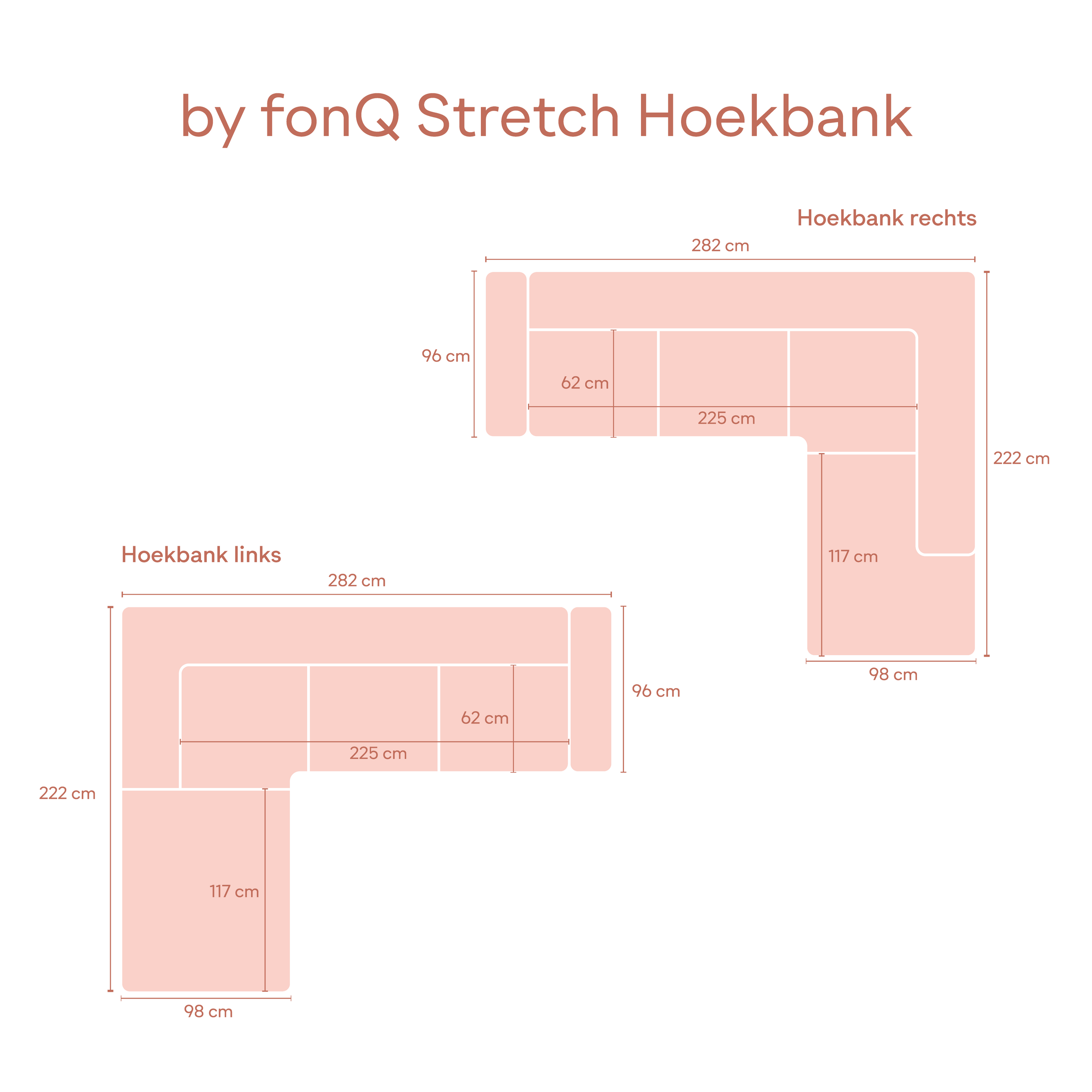 - De hoekbank heeft een zitdiepte van 62 cm