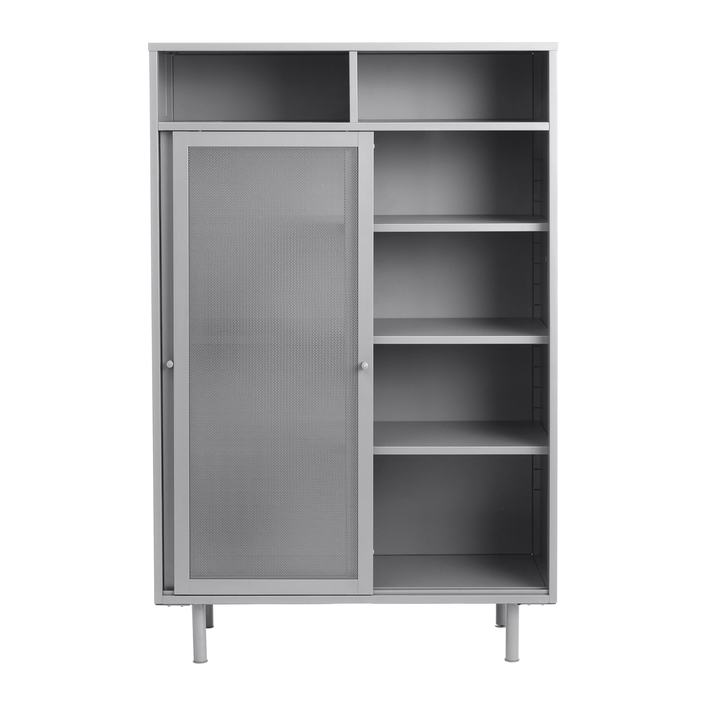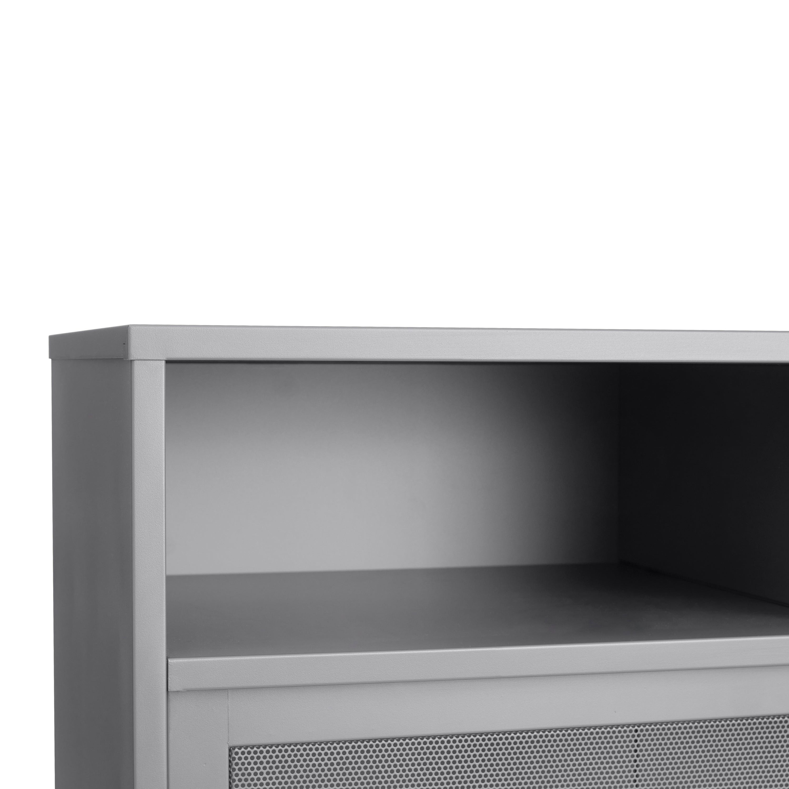 Handige indeling met slimme afmetingen De open vakken meten elk 42,3 x 40 x 15,7 cm (B x D x H) – ideaal voor decoratie of boeken. Achter de deuren vind je compartimenten van 86,4 x 40 x 26 cm (B x D x H), met legplanken die je in hoogte kunt verstellen tot ± 5 cm.