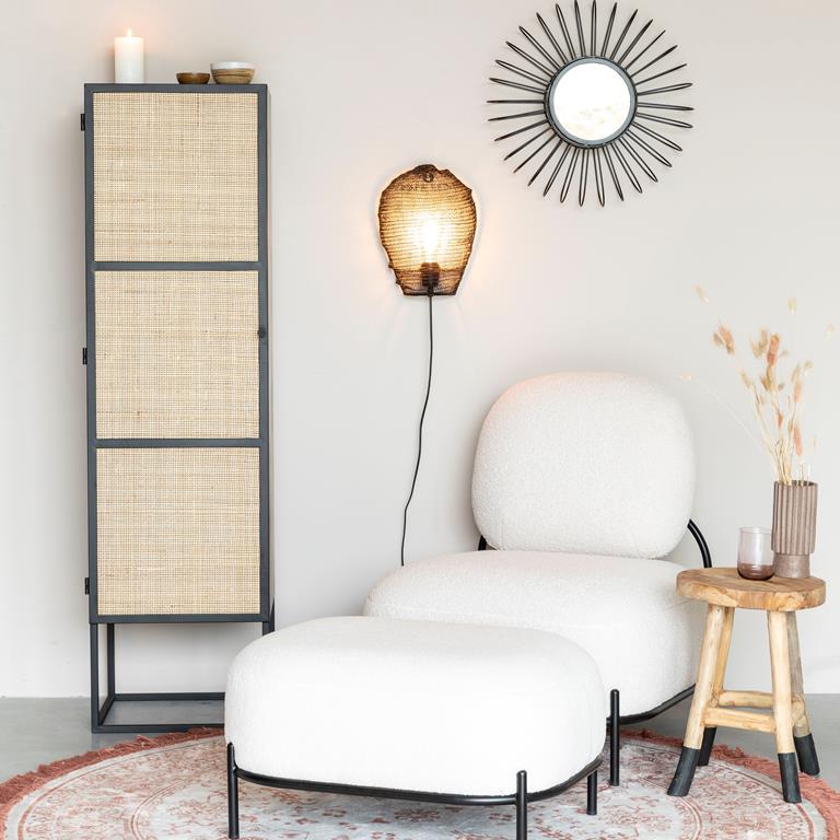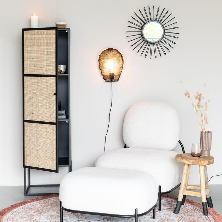 Deze opbergkast uit de Wave serie van by fonQ heeft zijn stijlvolle uitstraling te danken aan het contrast van het lichte, natuurlijke hout met het gekleurde frame. De gevlochten structuur van rotan maakt de kast helemaal af. Wij zijn fan!
