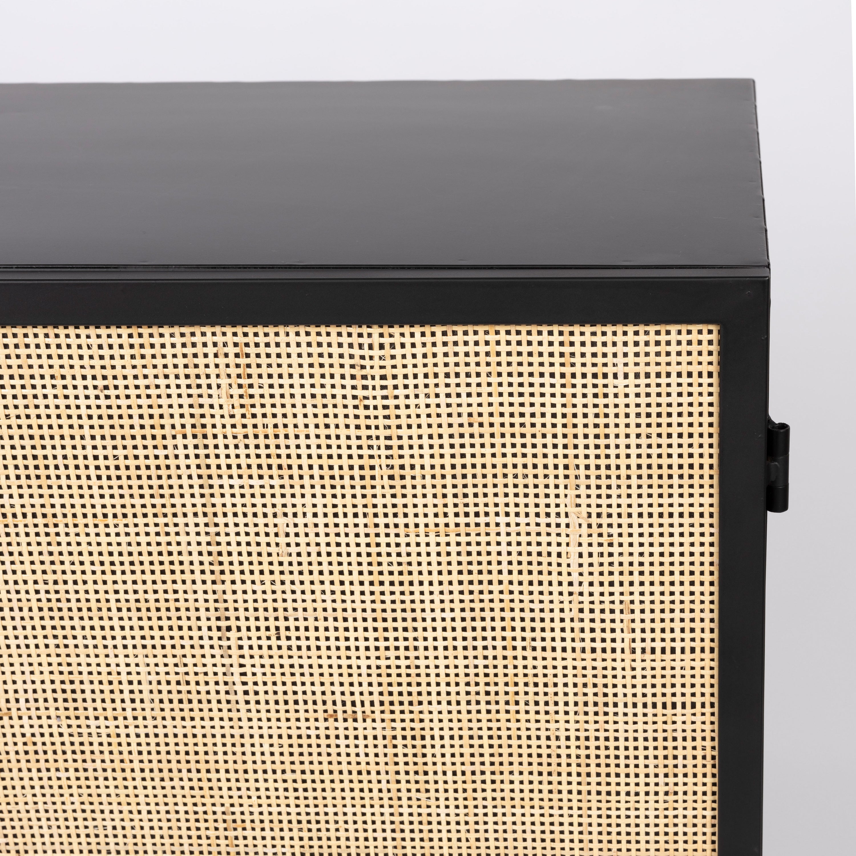 Deze opbergkast uit de Wave serie van by fonQ heeft zijn stijlvolle uitstraling te danken aan het contrast van het lichte, natuurlijke hout met het gekleurde frame. De gevlochten structuur van rotan maakt de kast helemaal af. Wij zijn fan!