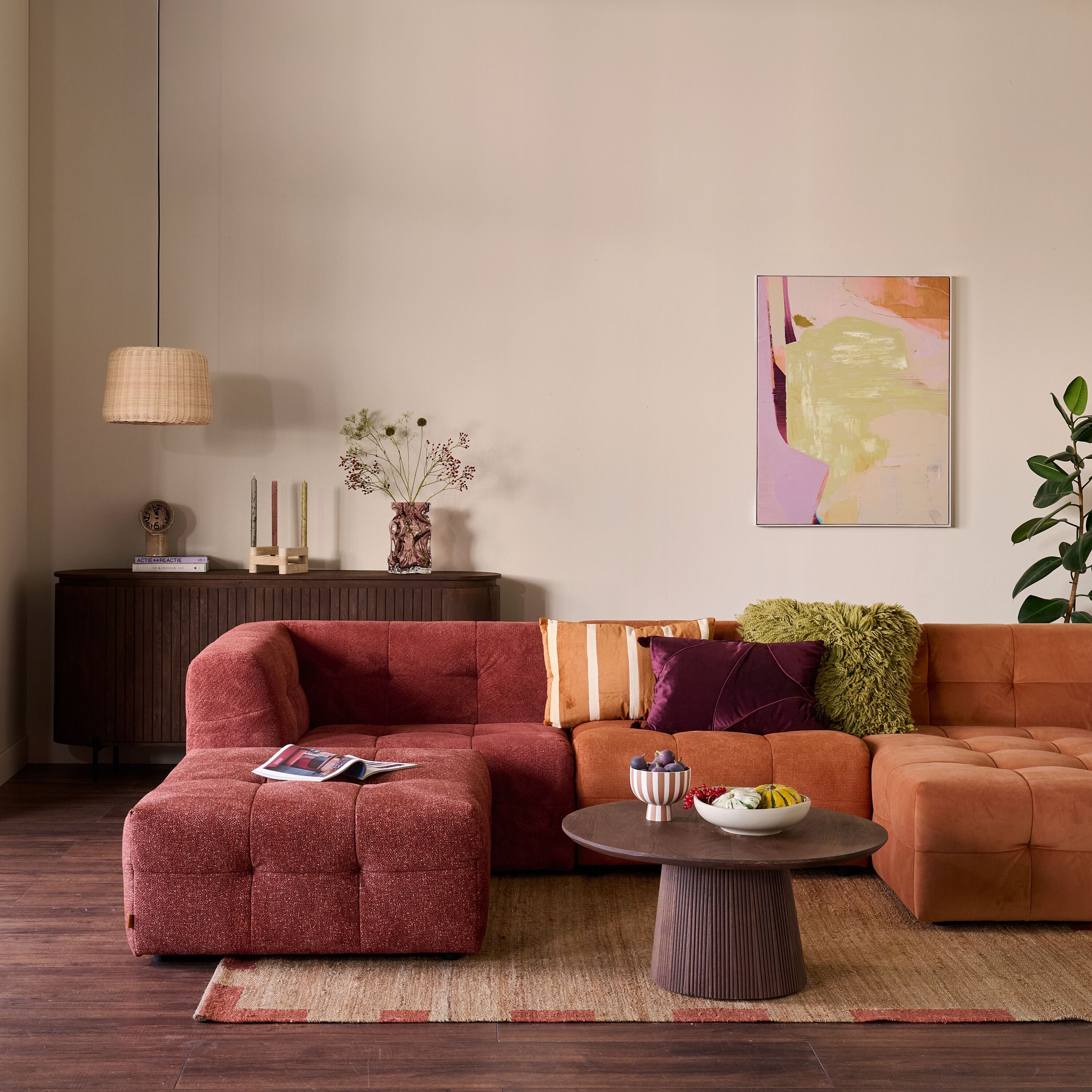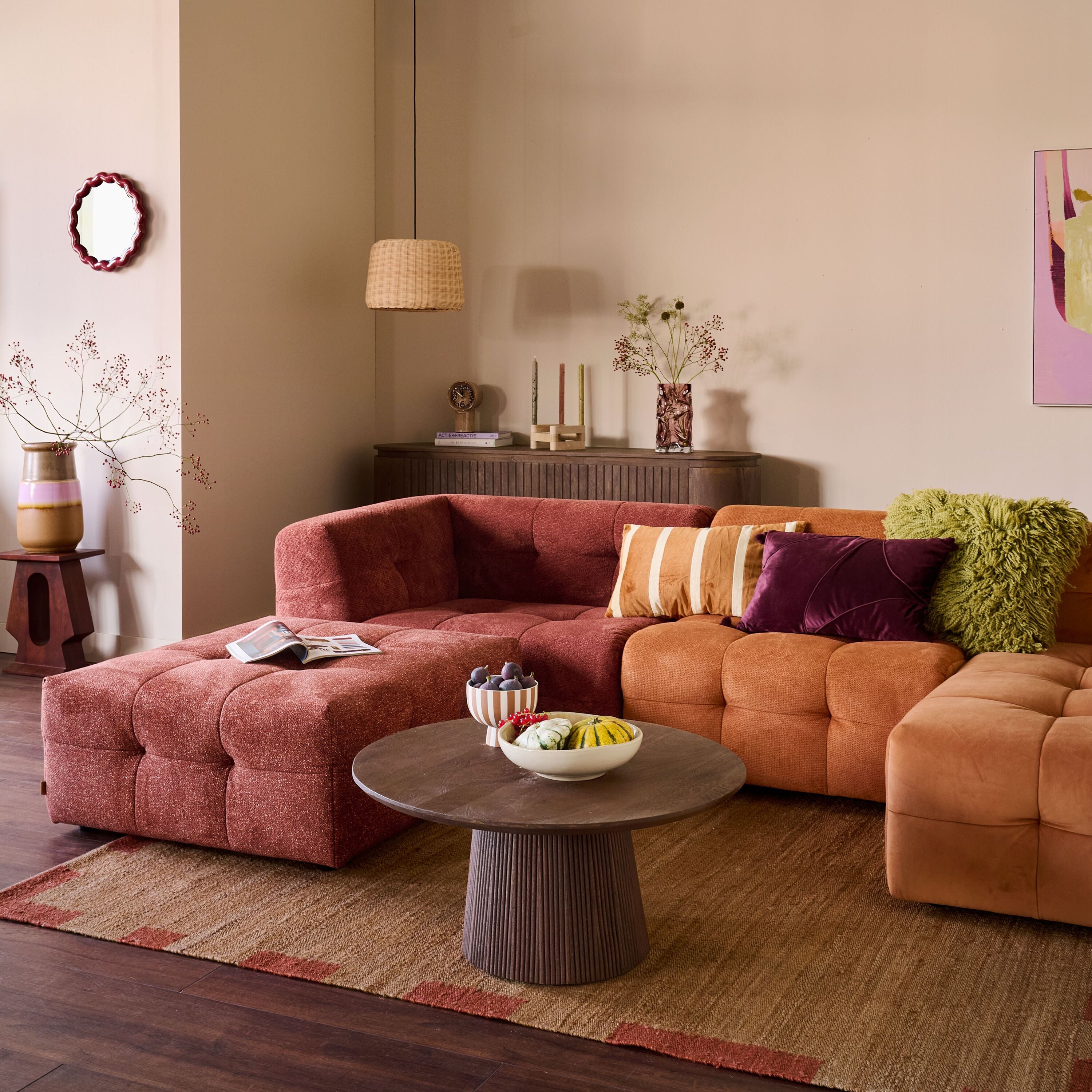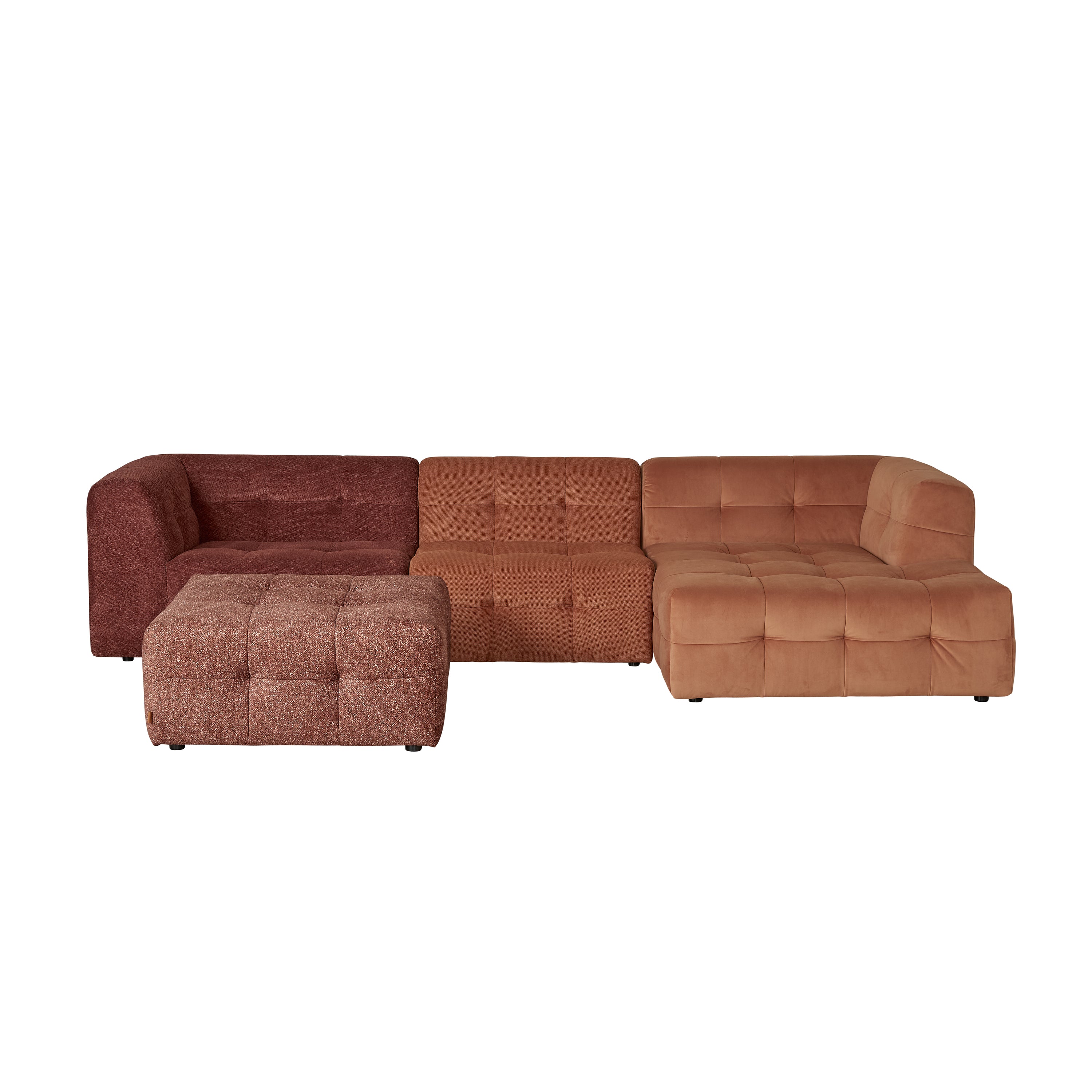 - Elke module heeft z’n eigen stof: van zacht chenille tot volle weefstof