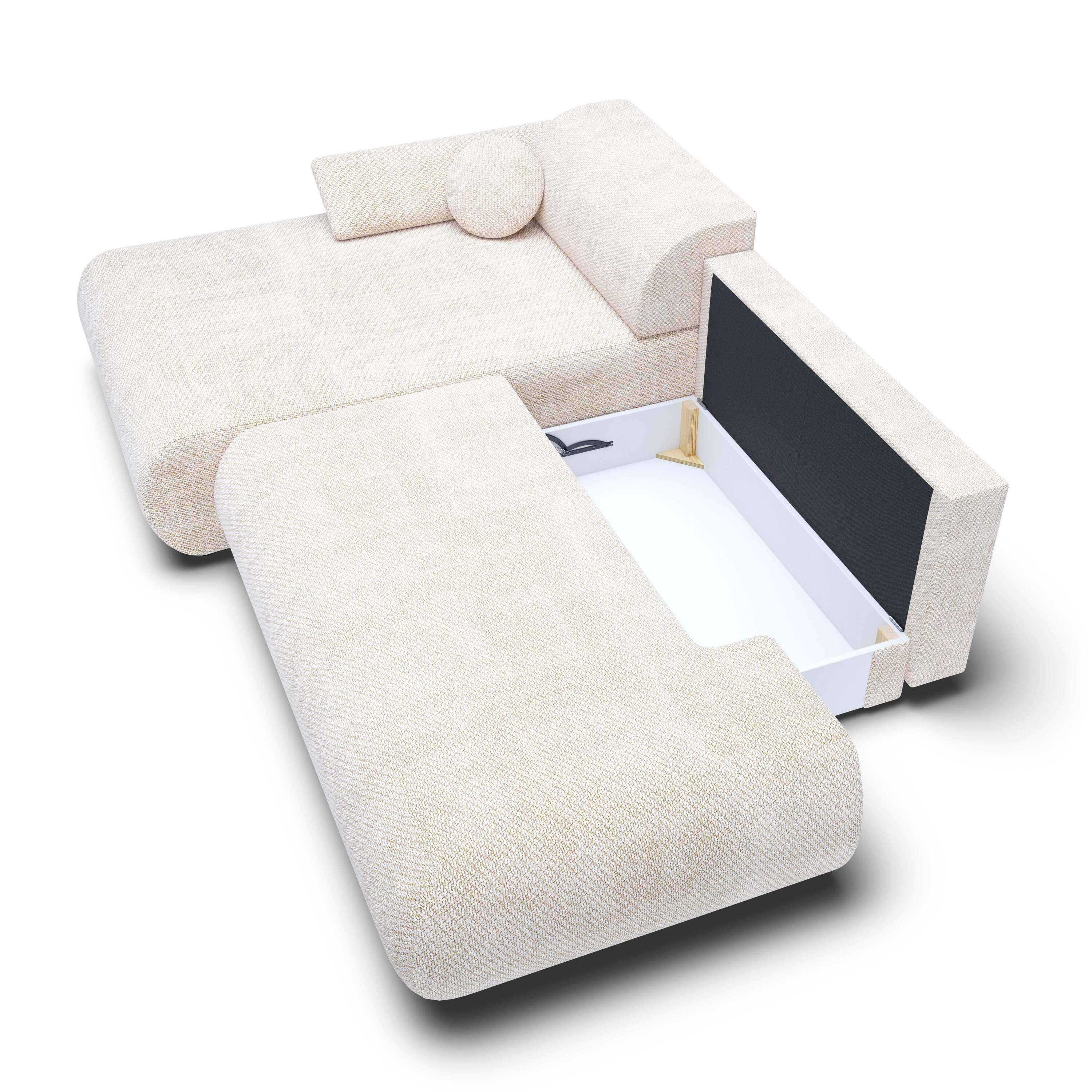 by fonQ Wisp Hoekbank met Chaise Longue Links met Slaapfunctie - Chenille - Greige