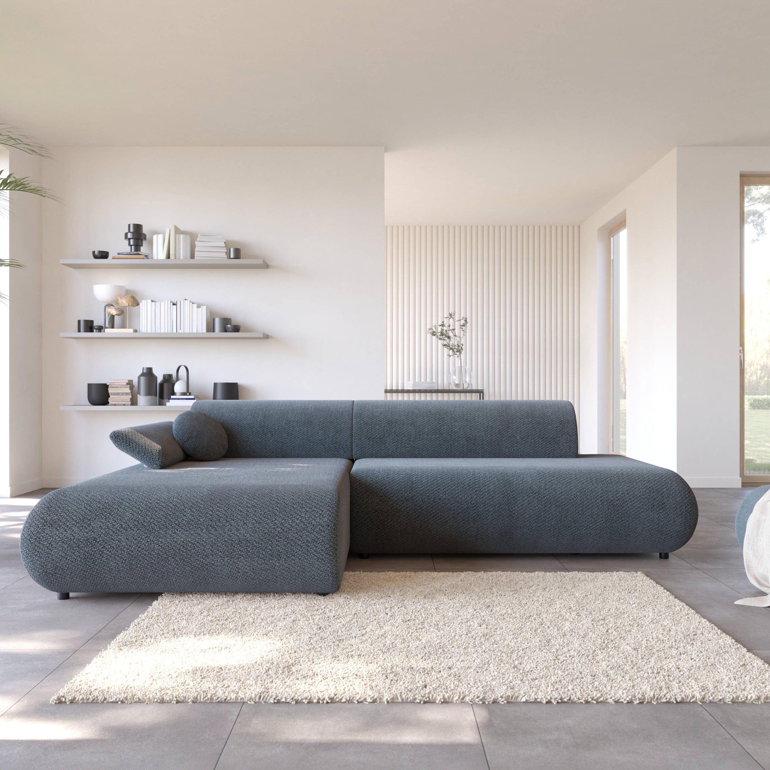 by fonQ Wisp Hoekbank met Chaise Longue Links met Slaapfunctie - Chenille - Marineblauw