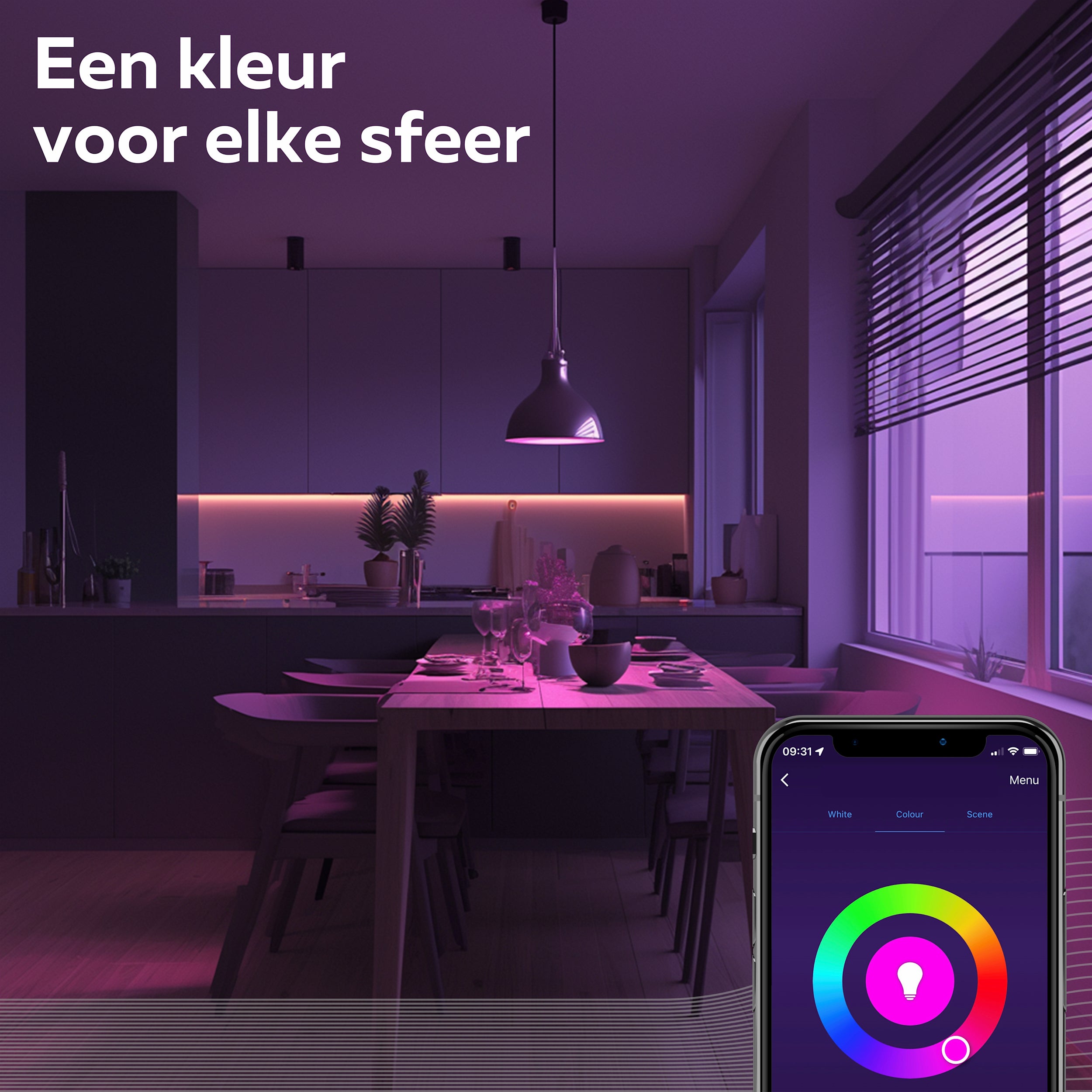 - Kies uit warmwit tot koelwit licht of 16 miljoen kleuren