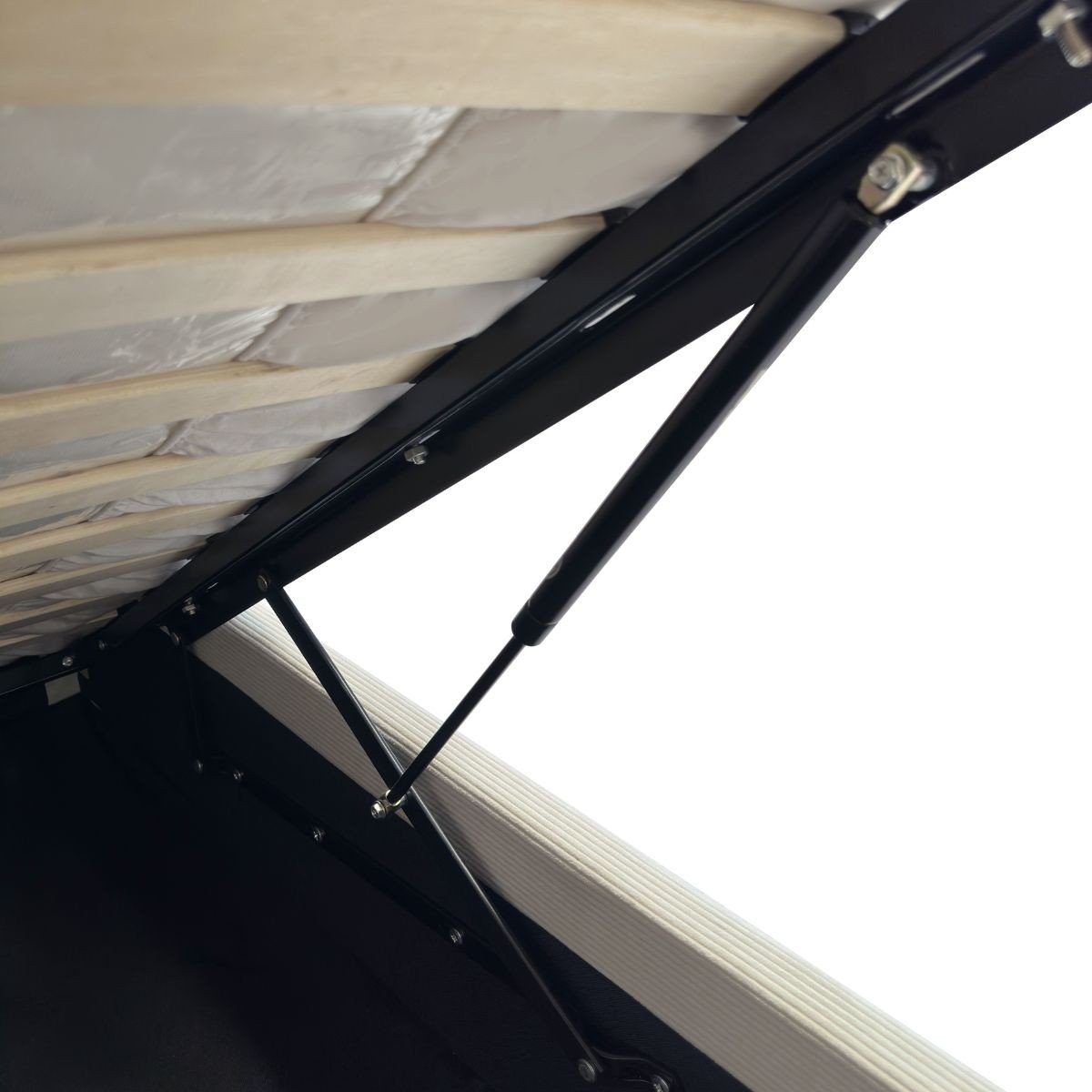 - De bedbodem kan dankzij gasveren worden opgetild en biedt toegang tot een grote opbergruimte.