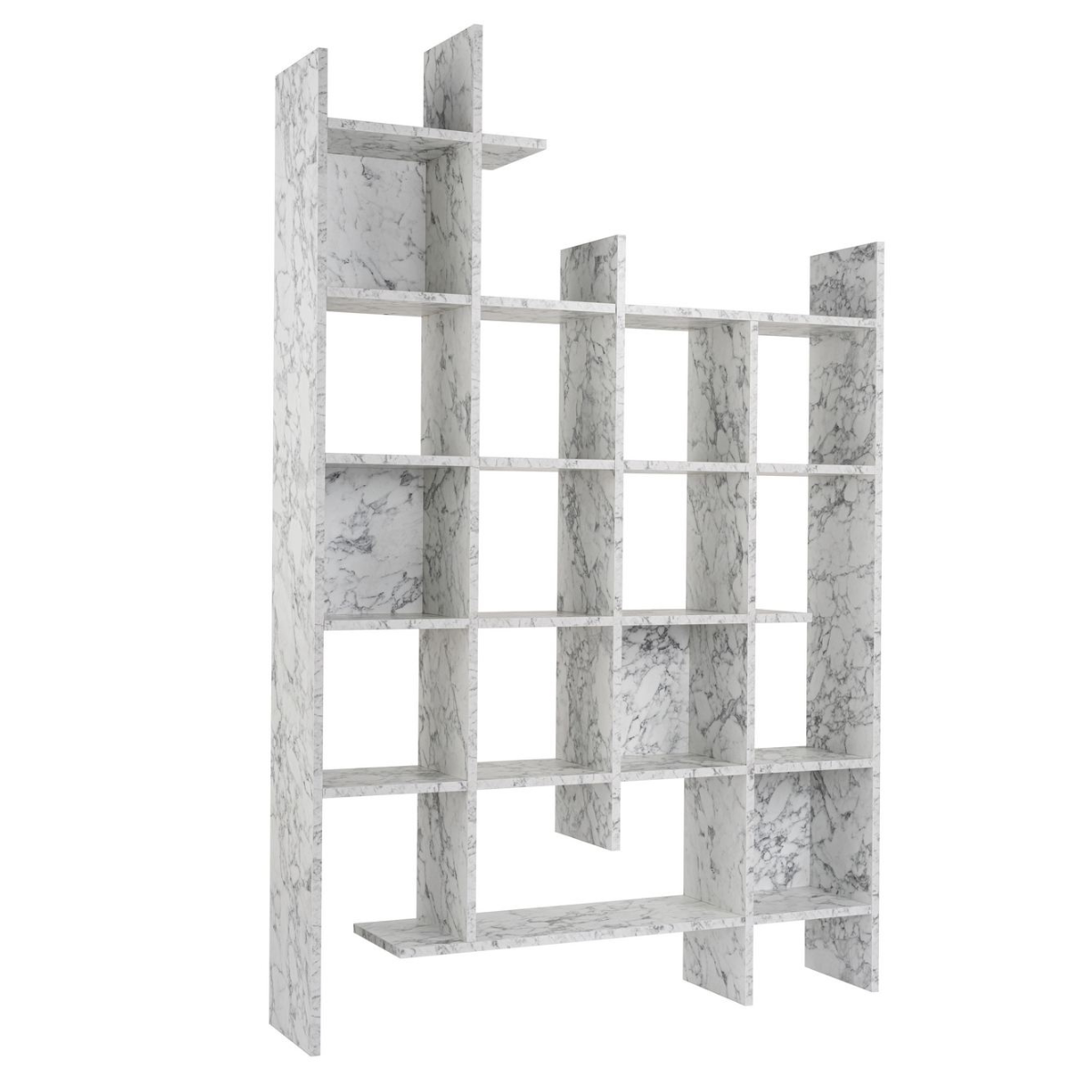Productkenmerken: Gemaakt van 100% melamine spaanplaat. FSC-gecertificeerd, wat aangeeft dat het product is gemaakt van 100% gerecycled hout afkomstig uit duurzaam beheerde bossen. Onze boekenkast kan eenvoudig aan de muur worden bevestigd. Productafmetingen: breedte 25,5 cm x lengte 122 cm x hoogte 188 cm - nettogewicht: 44,42 kg. Verpakkingsafmetingen: Verpakking nr. 1: lengte 189,5 cm x hoogte 30,7 cm x diepte 12 cm - brutogewicht: 21,3 kg. Verpakking nr. 2: lengte 127,5 cm x hoogte 30,7 cm x diepte 17 cm - brutogewicht: 24,5 kg. Totale brutogewicht: 45,8 kg.