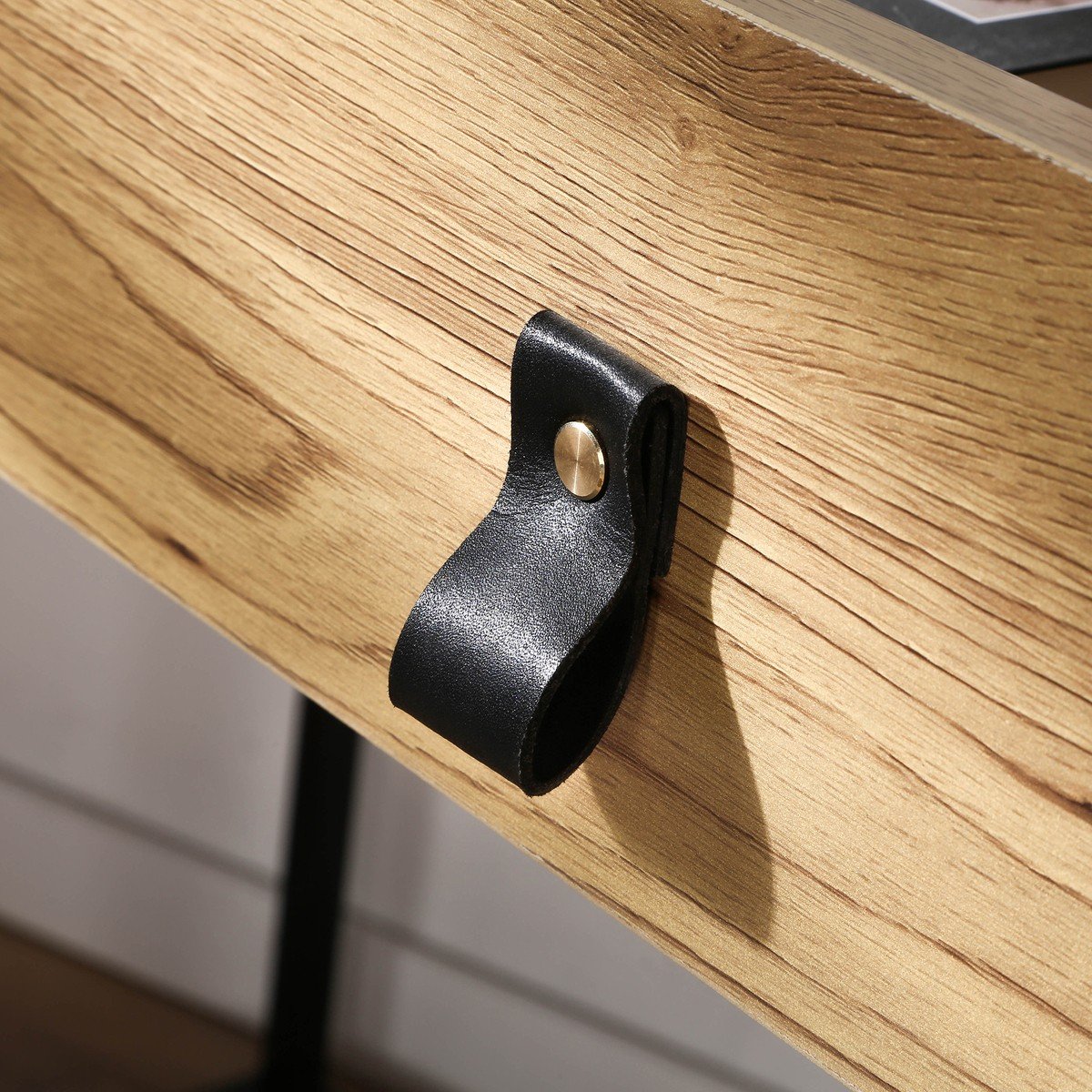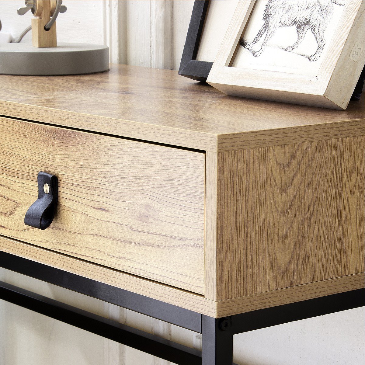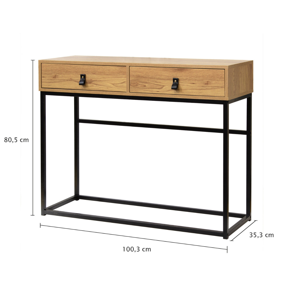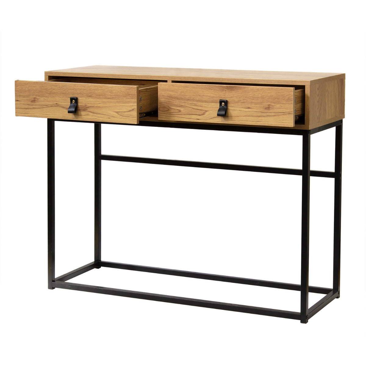Ben je op zoek naar een stijlvolle console voor je woonkamer of hal? Ontdek deze console met 2 laden en metalen poten, eikenkleurig.