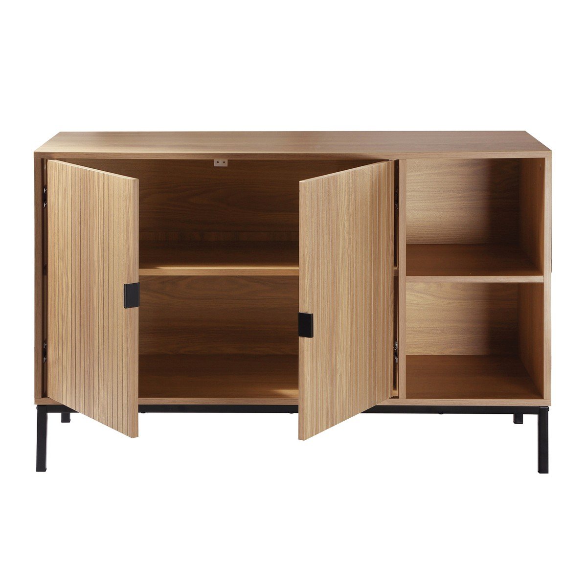 - 1 plank achter de 2 deuren. Poten van zwart metaal, 18 cm hoog.